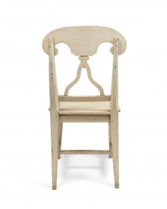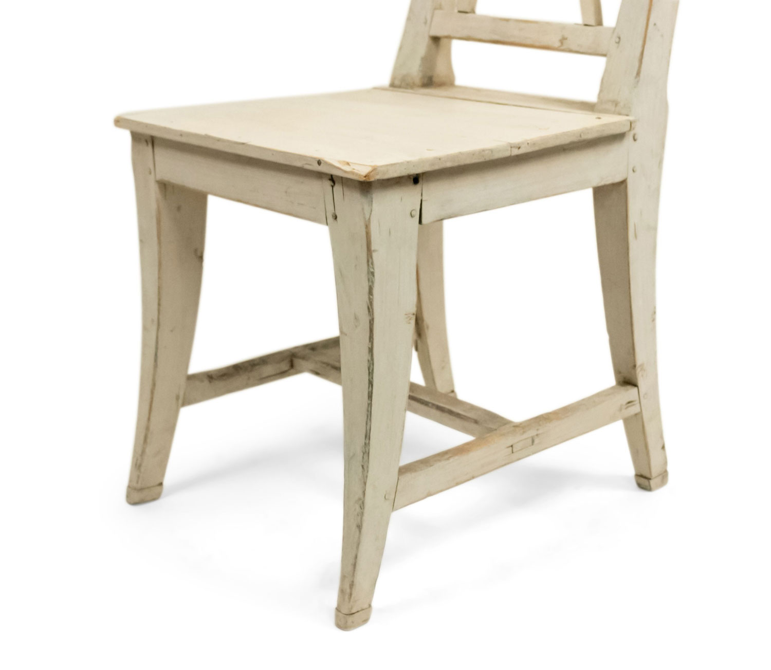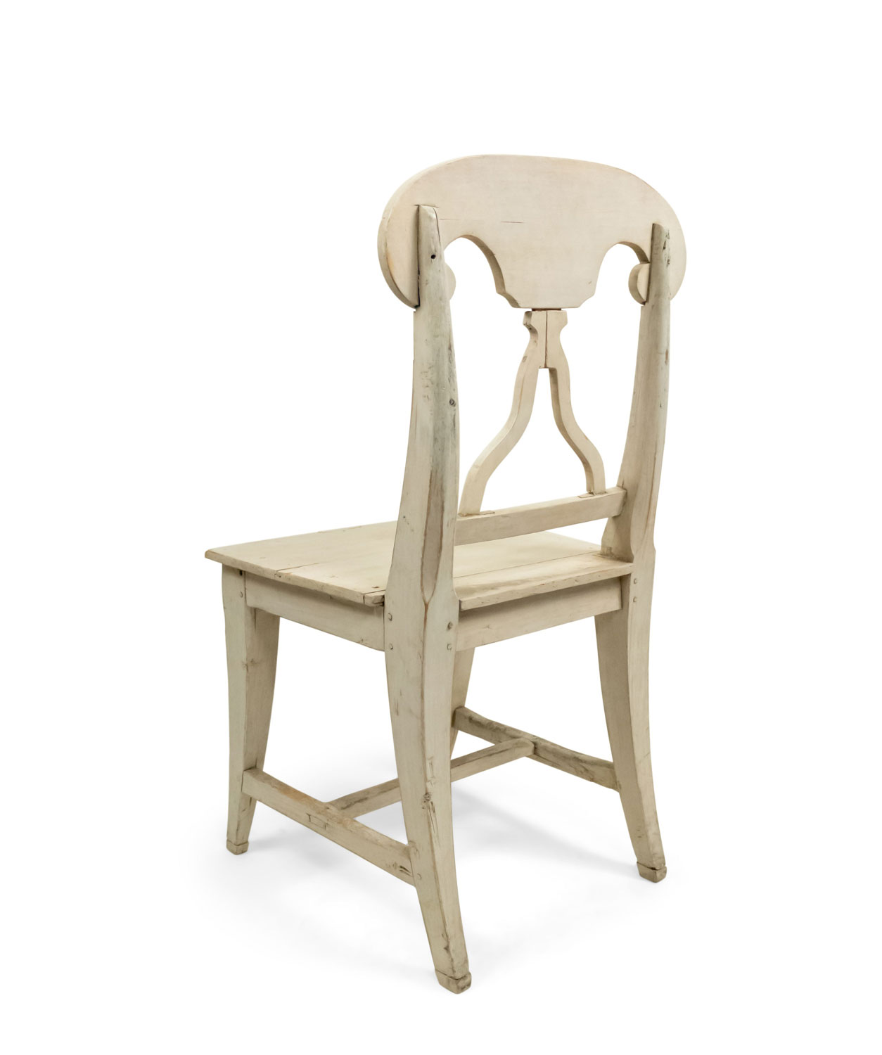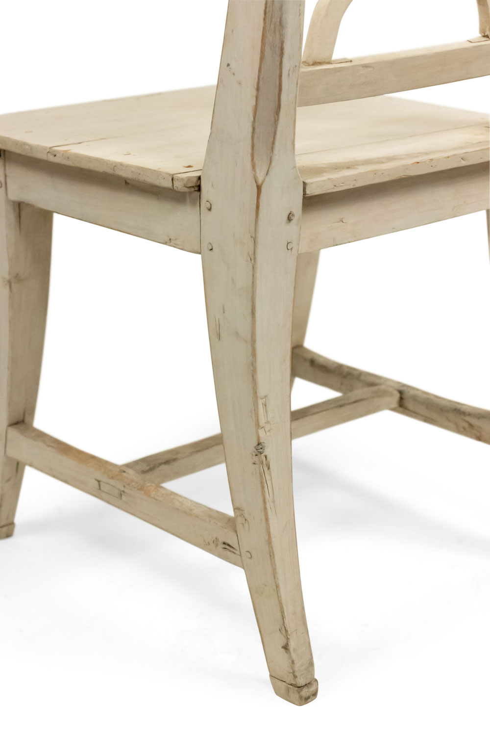 SET of 6 Swedish Gustavian mid century side chairs with an antique white painted finish and an open back design.