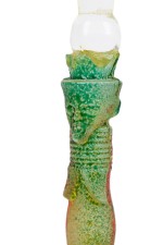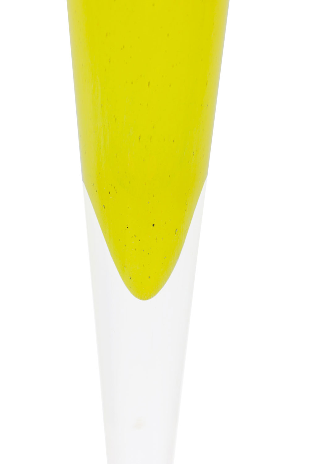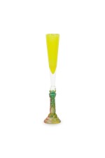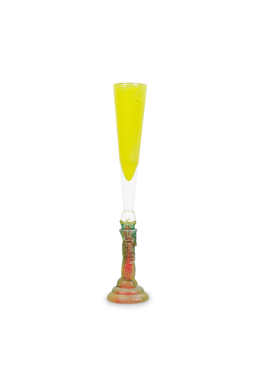Swedish Post-war yellow champagne glass with textured clear and multicolored glass pedestal base (KOSTA BODA signed and numbered).