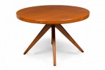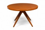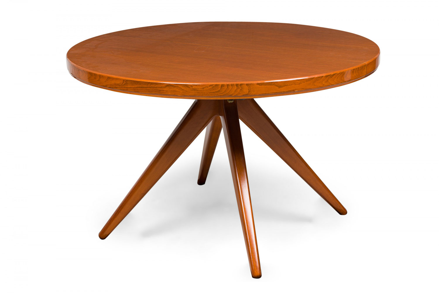 Swedish Mid-Century Modern circular extension dining / center table with two removable leaves, resting on four center-mounted tapered wooden legs. (attributed to ERNO FABRY).
