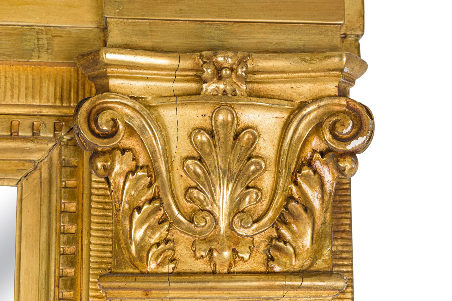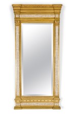 Style: Mid-Century Materials & Techniques: Carved, gilt / giltwood, mirror, painted, wood Category: Mirrors Condition: Losses to finish consistent with age Good; Wear consistent with age and use