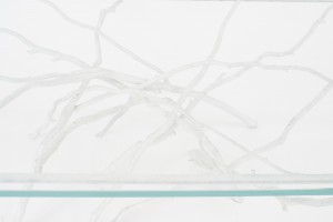 Contemporary Rustic style white painted iron faux twig design rectangular coffee table with 3/4" glass top (by JOAN SHERMAN-special commission).