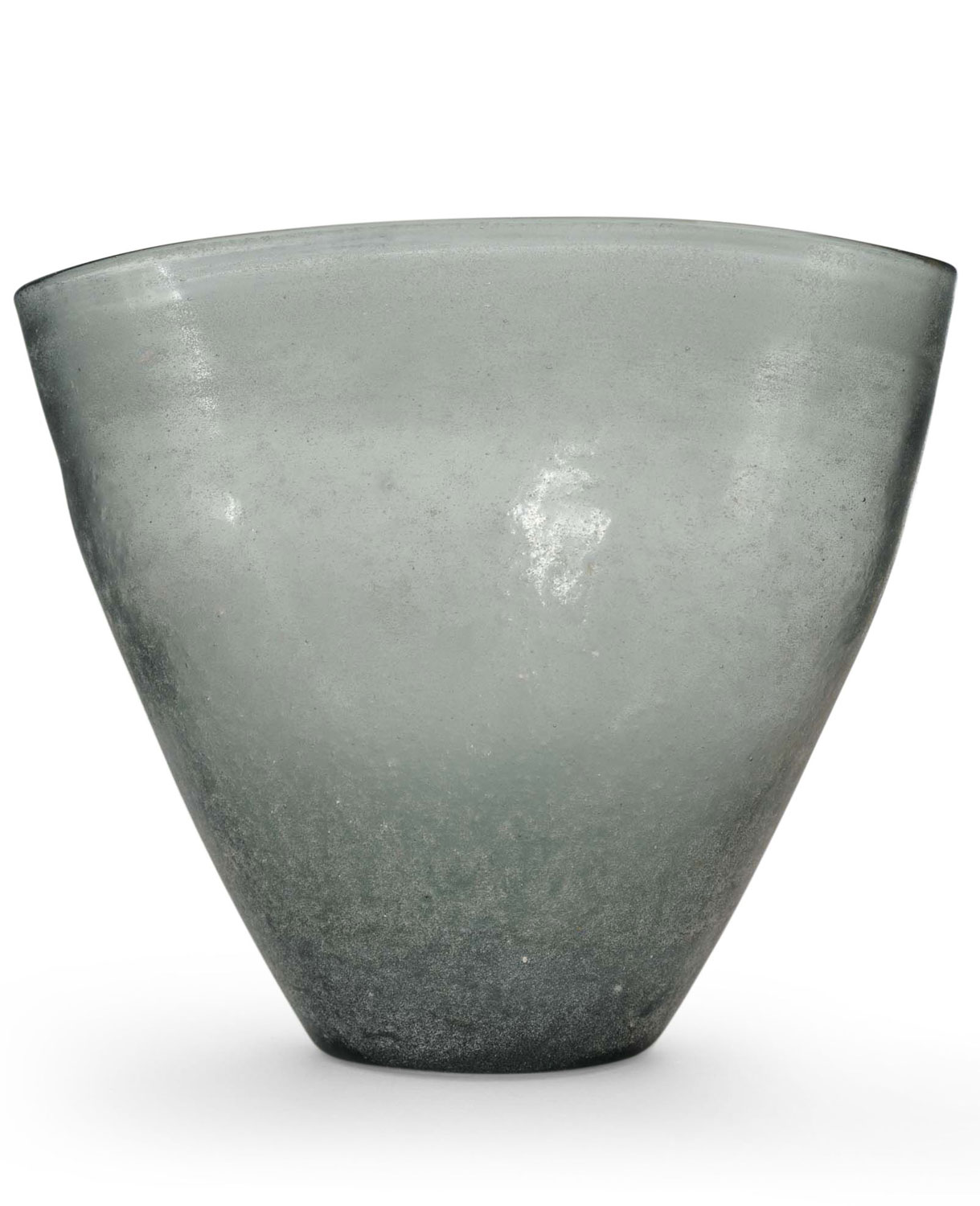 MidCentury Italian tapered gray-tinted blown glass vase with an elliptical opening..