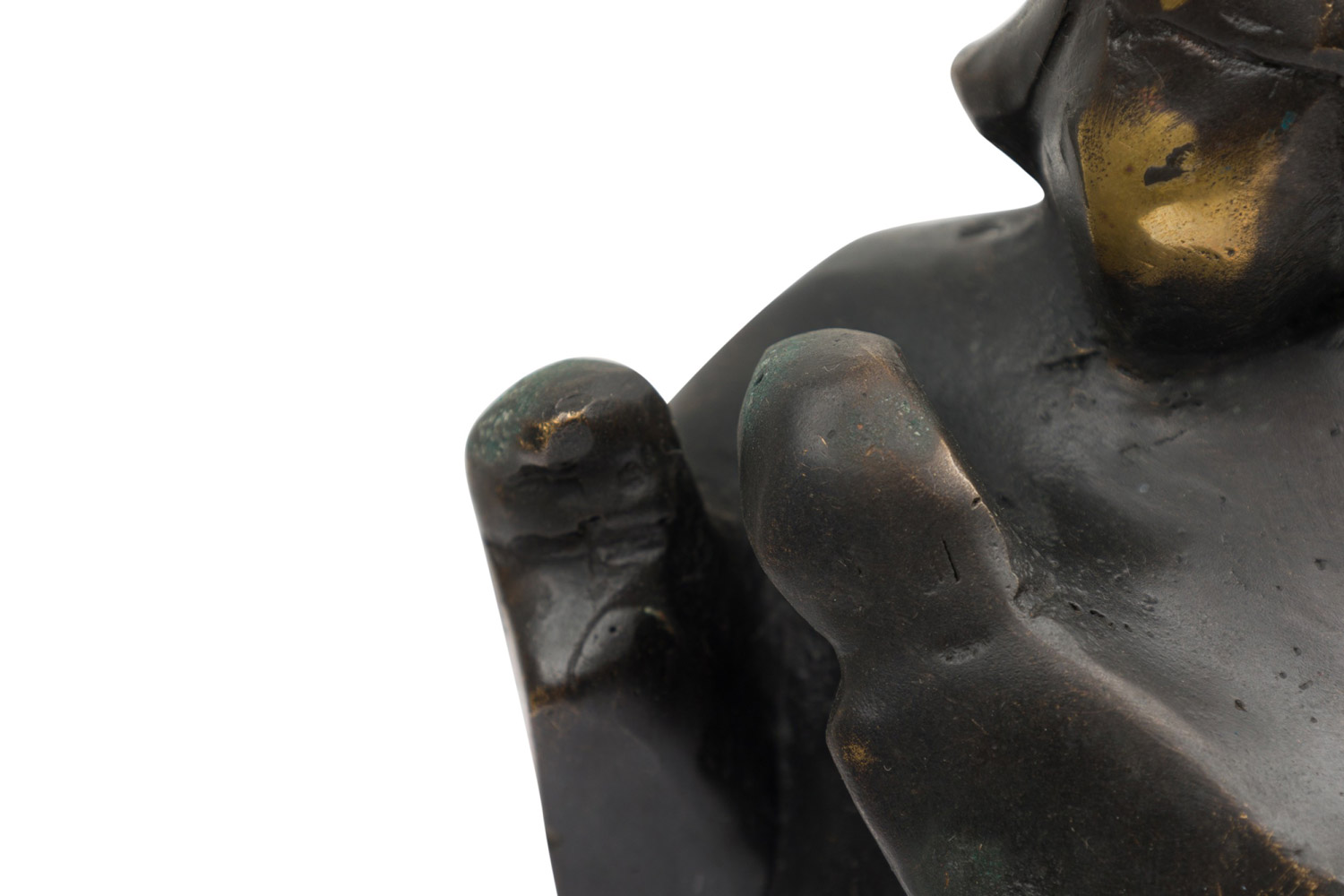 Style: Contemporary/Post-War Design Materials & Techniques: Bronze, carved, metal Category: Cleared Sculpture Condition: Each piece in this collection is uniquely handcrafted and visually distinct due to its artisanal origin. Good; Wear consistent with age and use