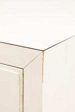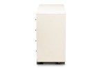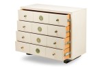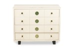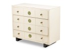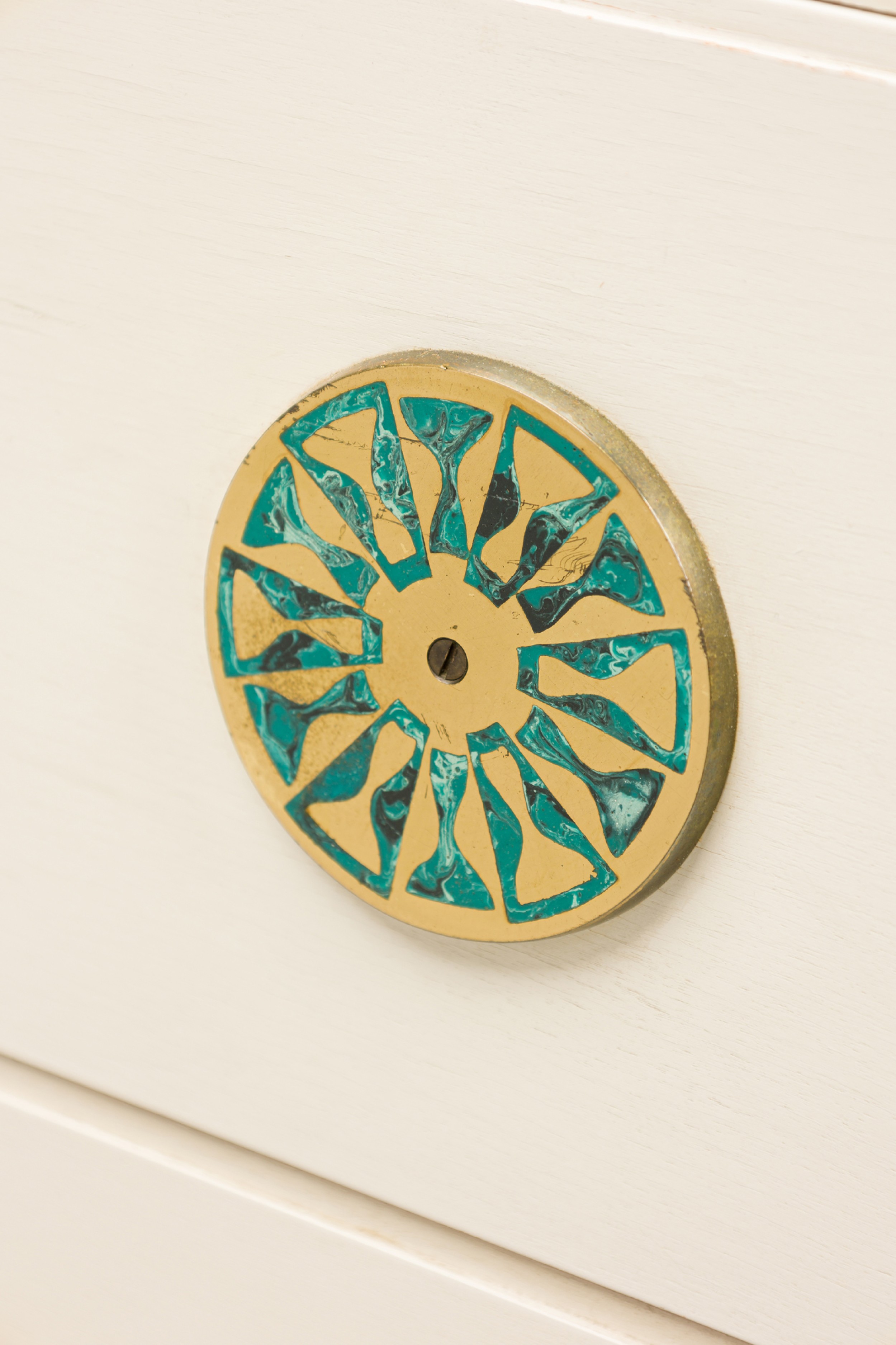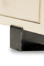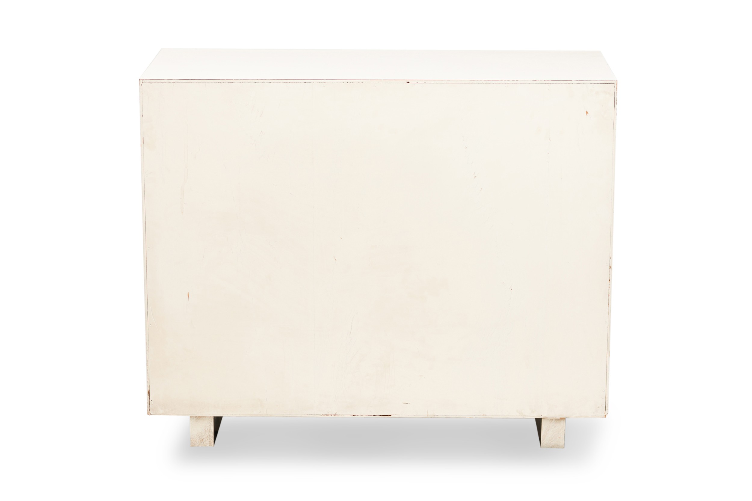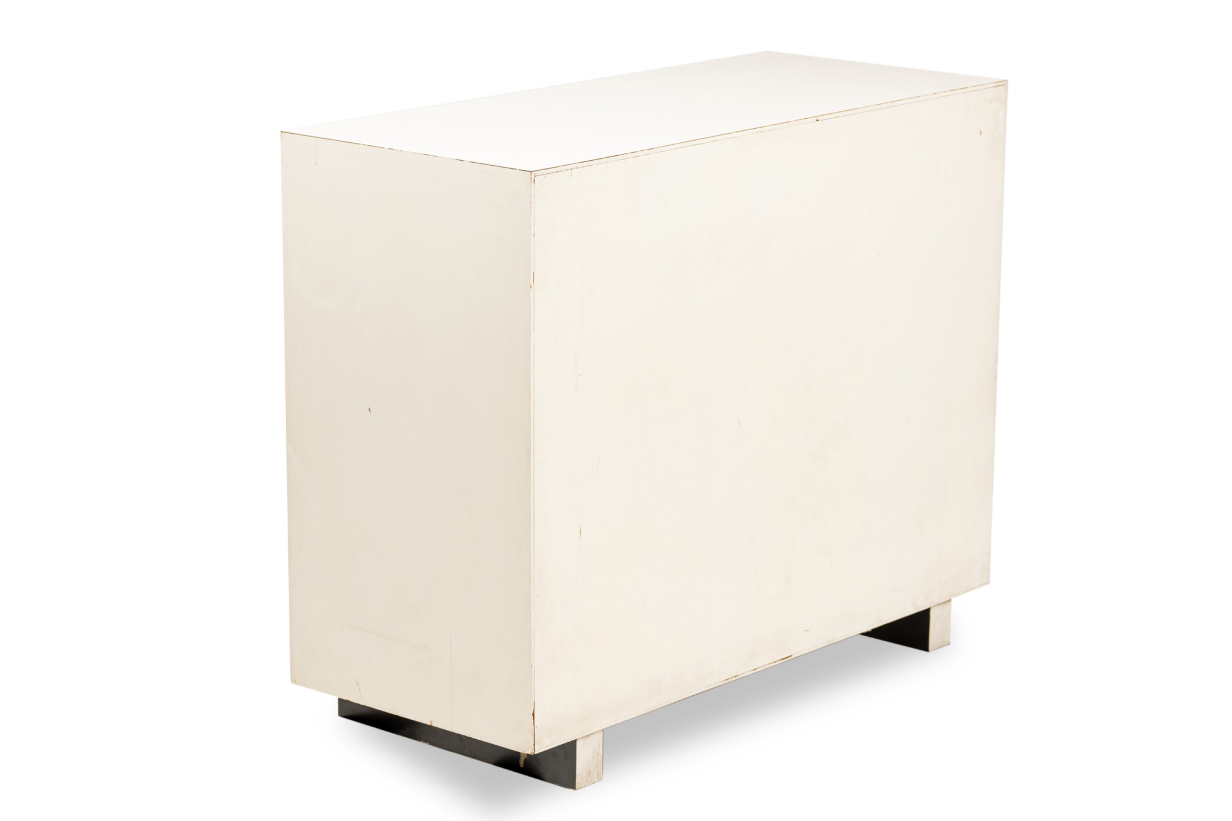 PAIR of American Mid-Century High Style White Painted Chest with 4 Drawers resting on black metal bases (TOMMI PARZINGER; decorative hardware by PEPE MEDOZA) (PRICED AS PAIR).