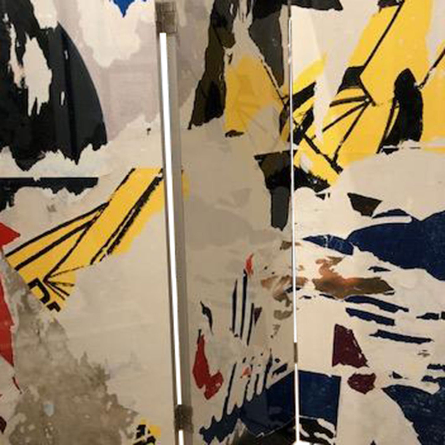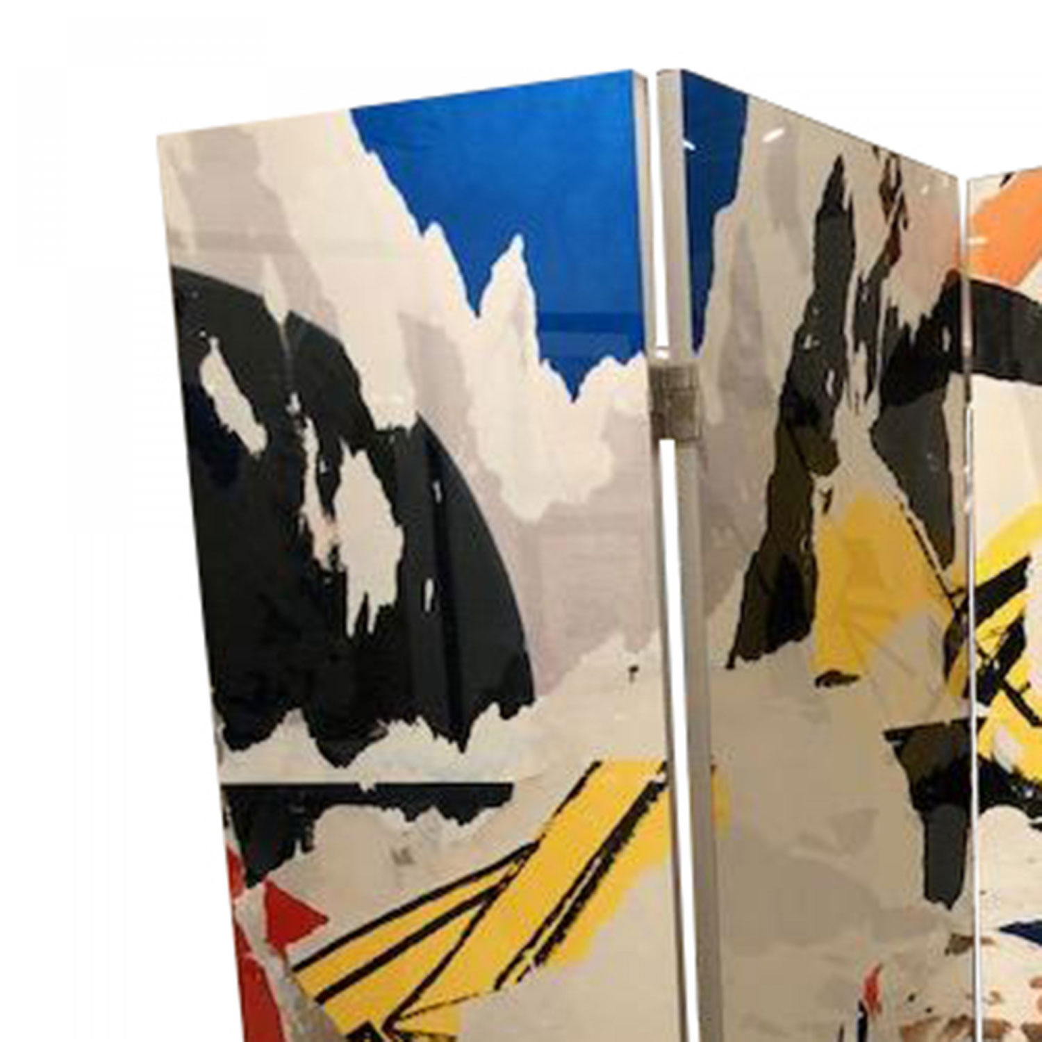 Contemporary Metal 3-Fold Screen with Abstract Design