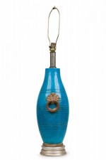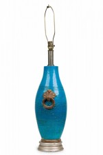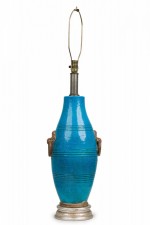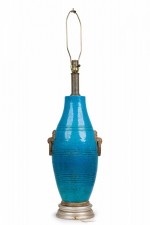 Ugo Zaccagnini Mid-Century Italian Ceramic Persian Blue Glazed Table Lamp