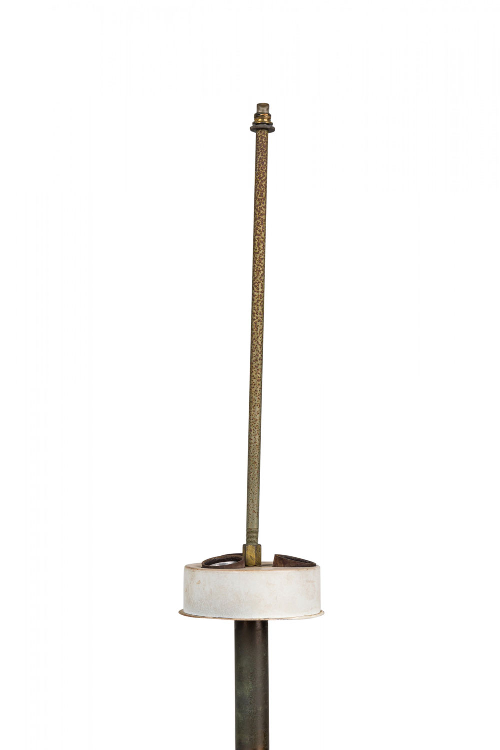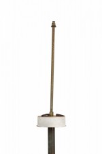 Style: Mid-Century Materials & Techniques: Metal, wood, ceramic, veneer, brass Category: Lighting Condition: No plug; needs rewiring. Electric non-working. Wear to finish from age and use. Felt erosion on bottom. Ships without shade. Good; Wear consistent with age and use