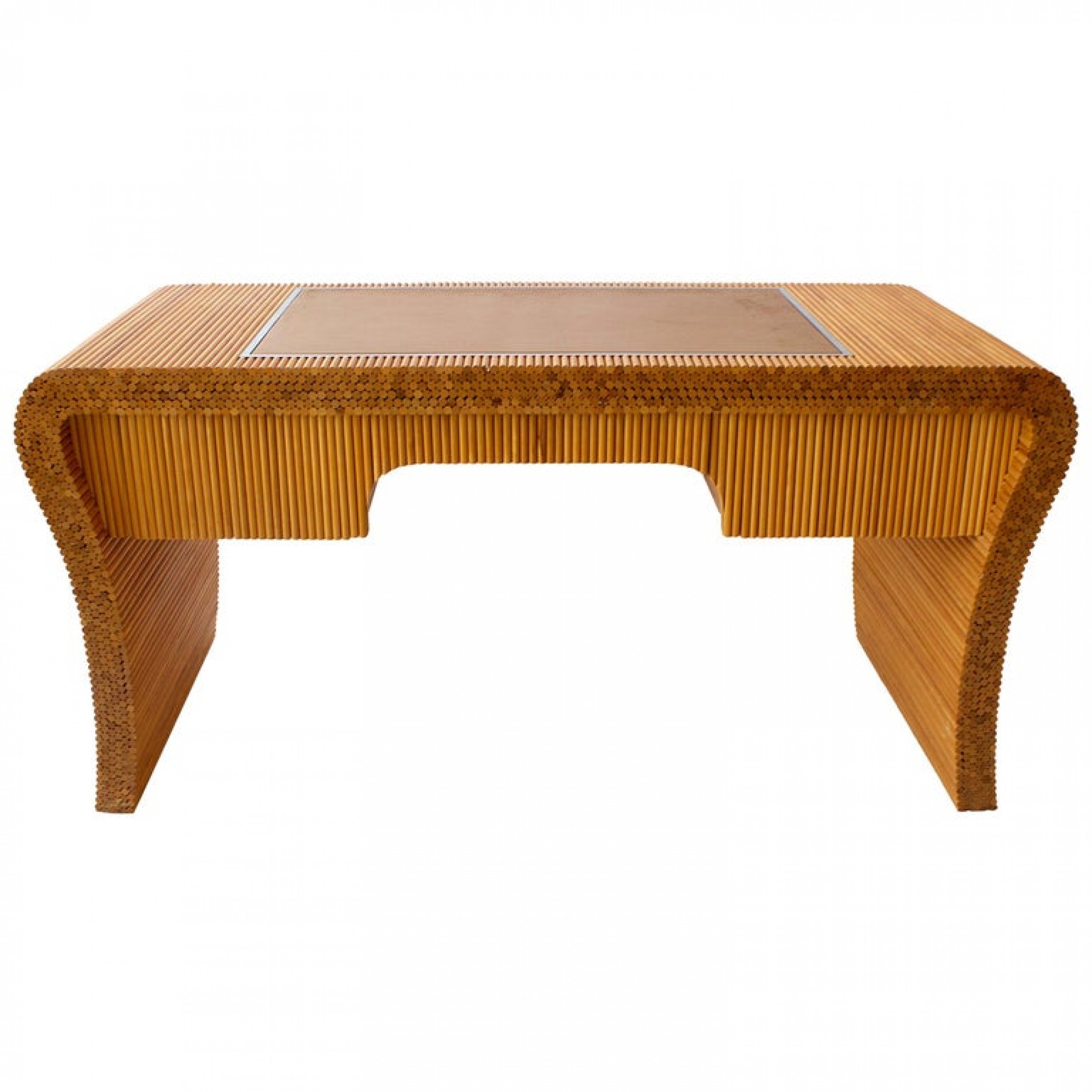 Unusual American Modern Bamboo, Leather, and Chrome Banded Desk, Ernest Masi