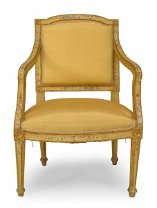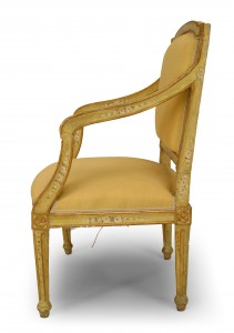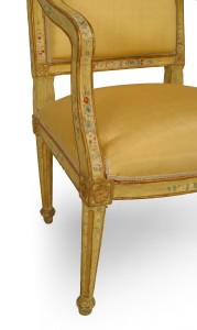 Set of 4 Venetian Yellow Painted Floral Arm Chairs