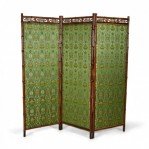 Victorian Bamboo 3-Fold Screen with Floral Green and Yellow Upholstered Panels