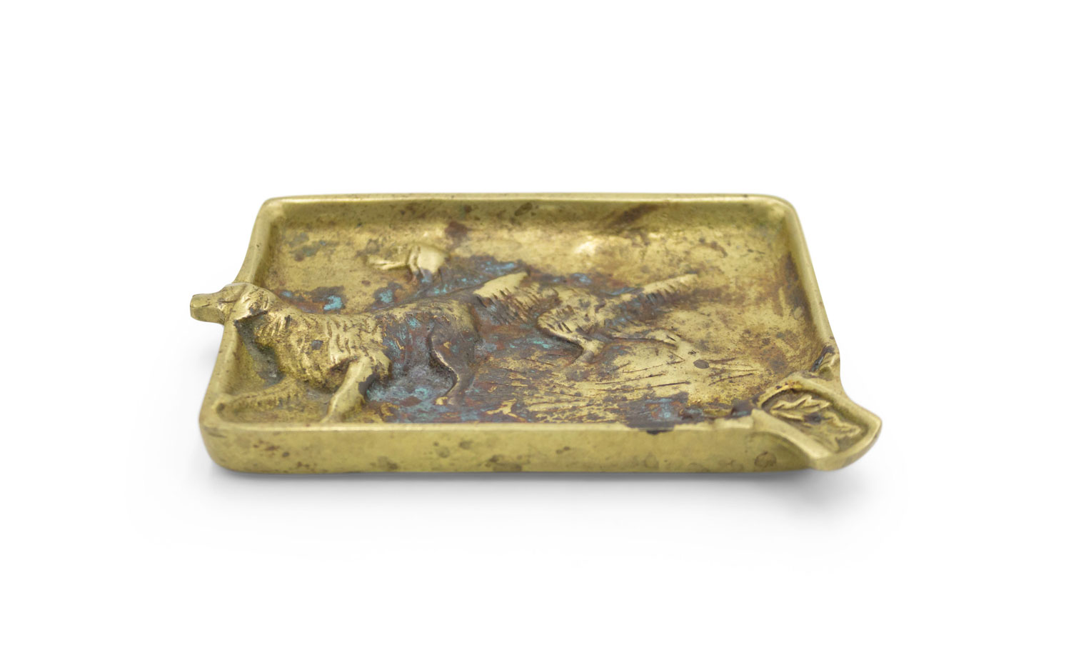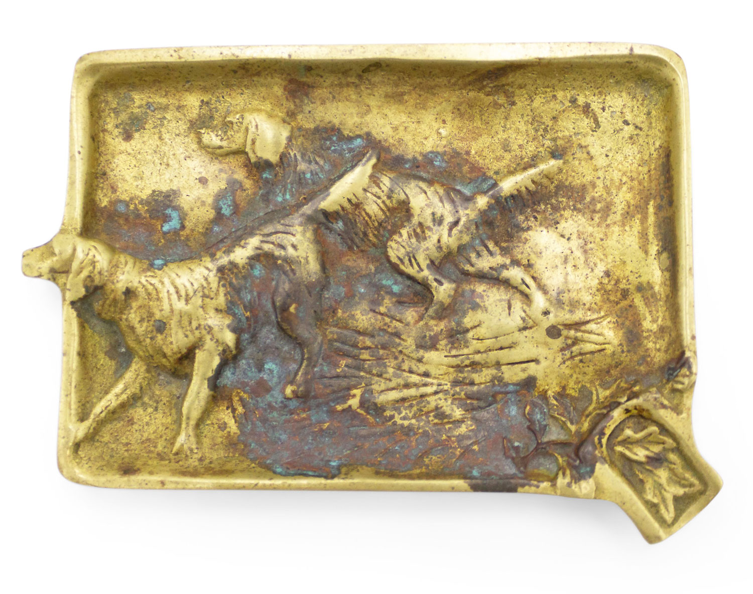English Victorian brass ashtray with 2 dogs (setters) in relief