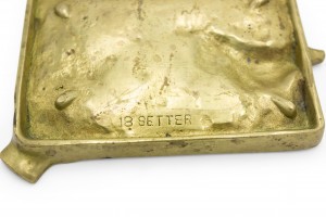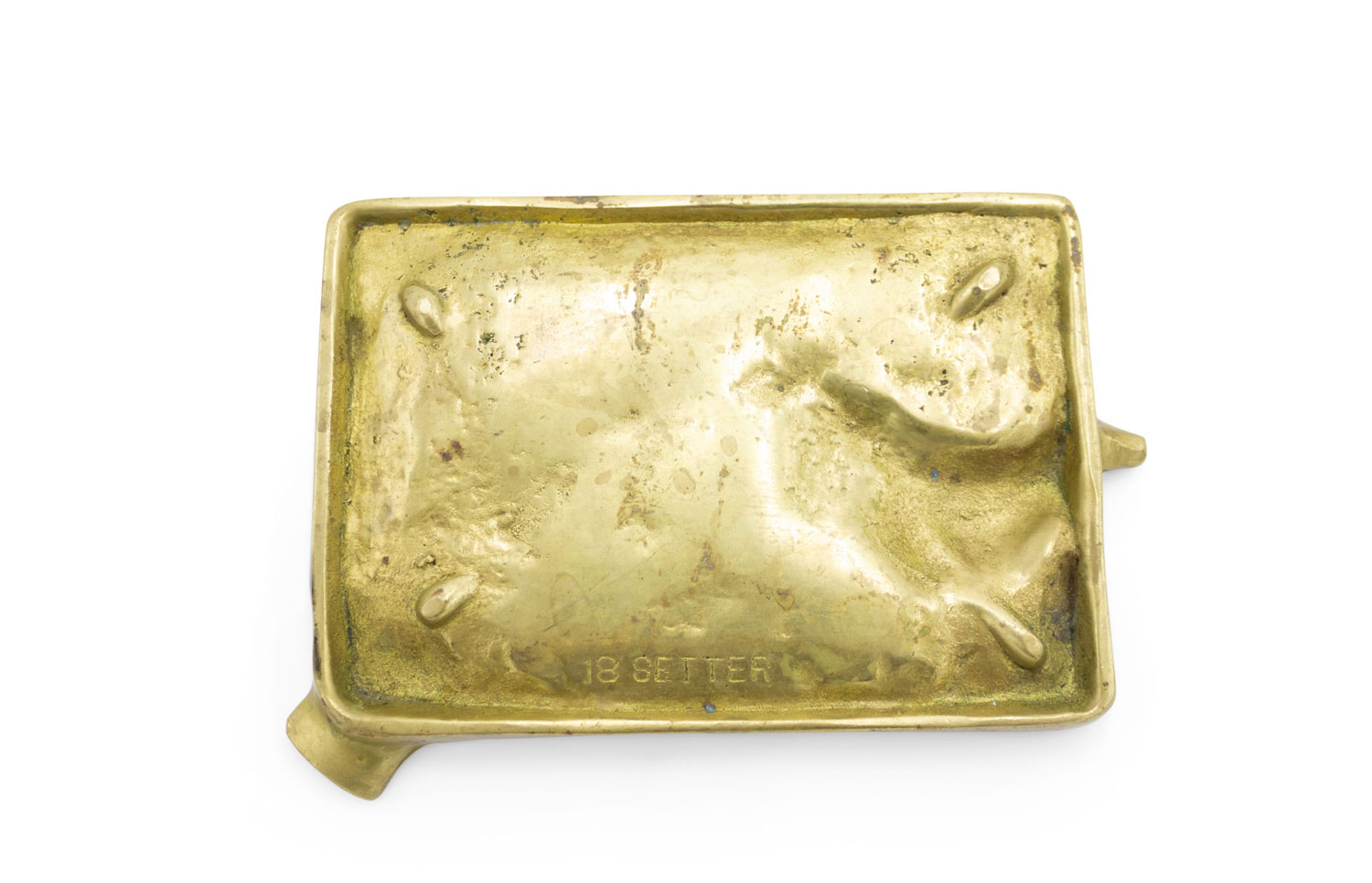 English Victorian brass ashtray with 2 dogs (setters) in relief.