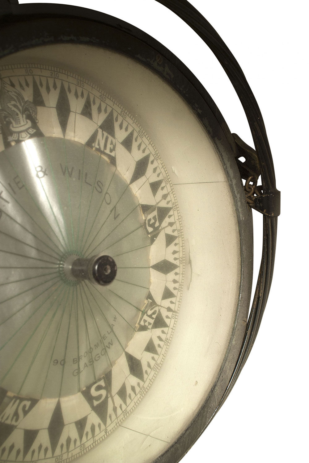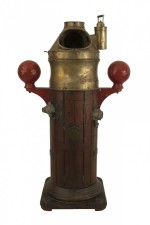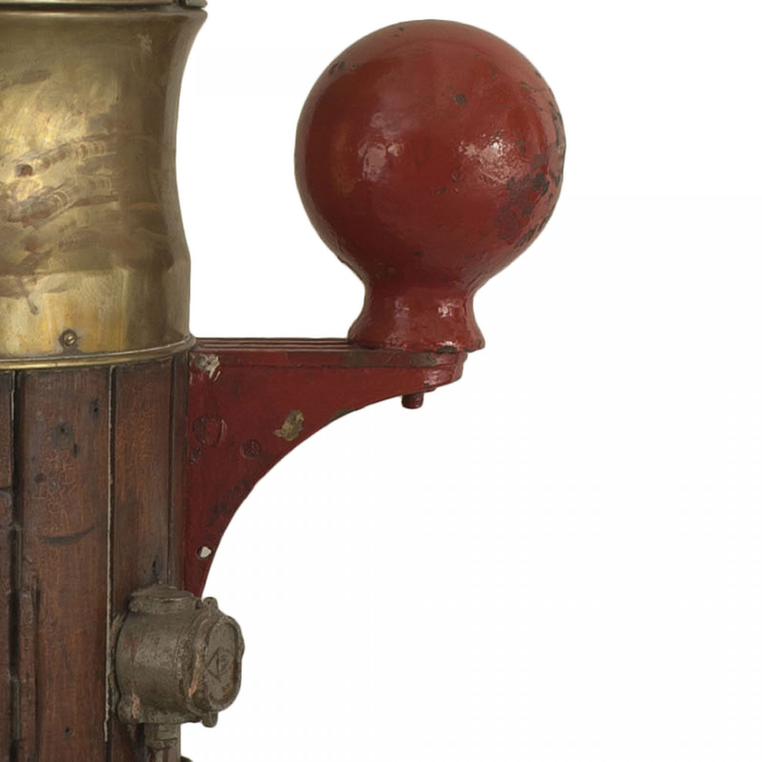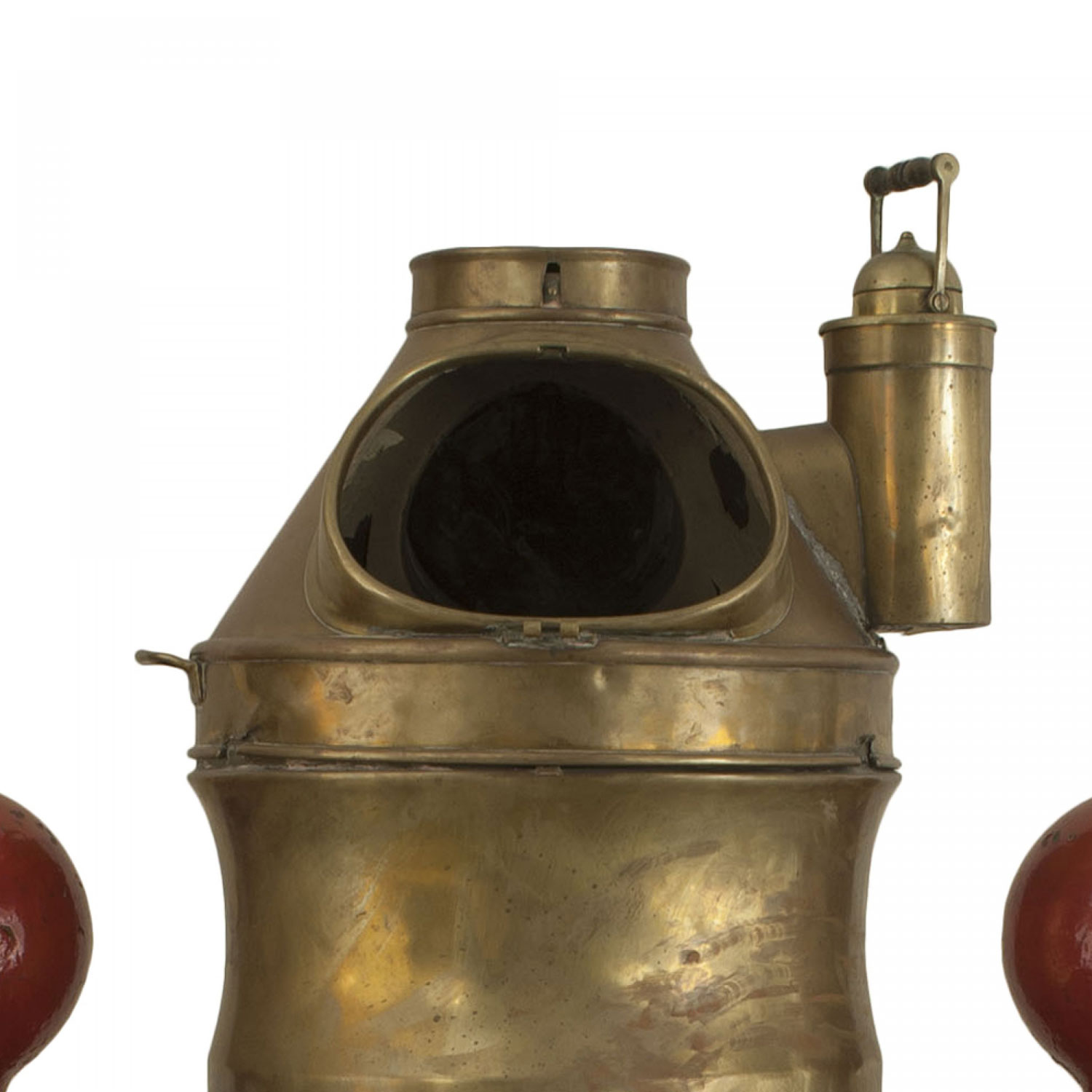 English Victorian brass and wood ship binnacle with 2 red balls.