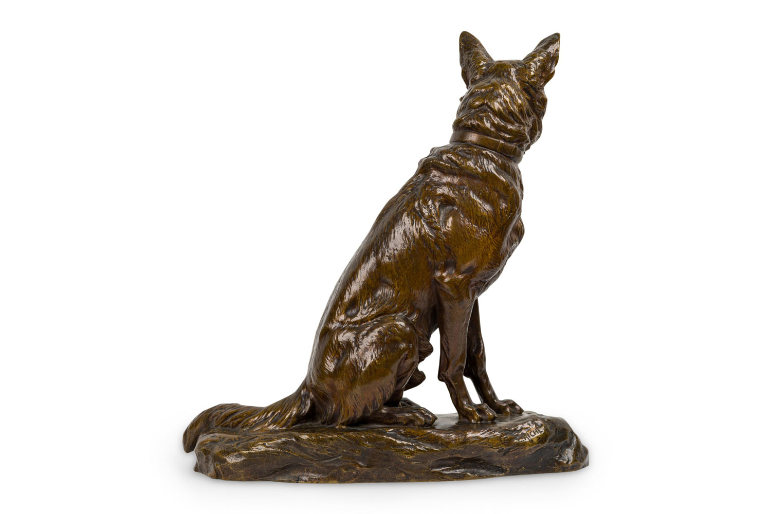 French Victorian bronze figure of Alsatian seated on hind legs (att: L. Riche).