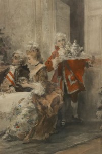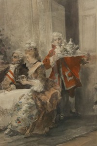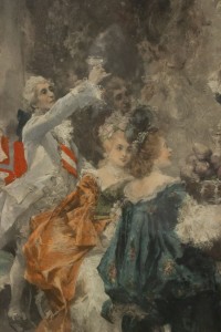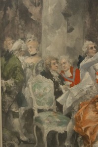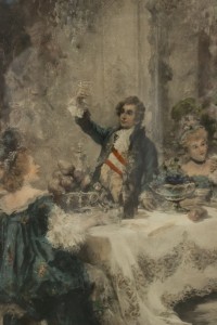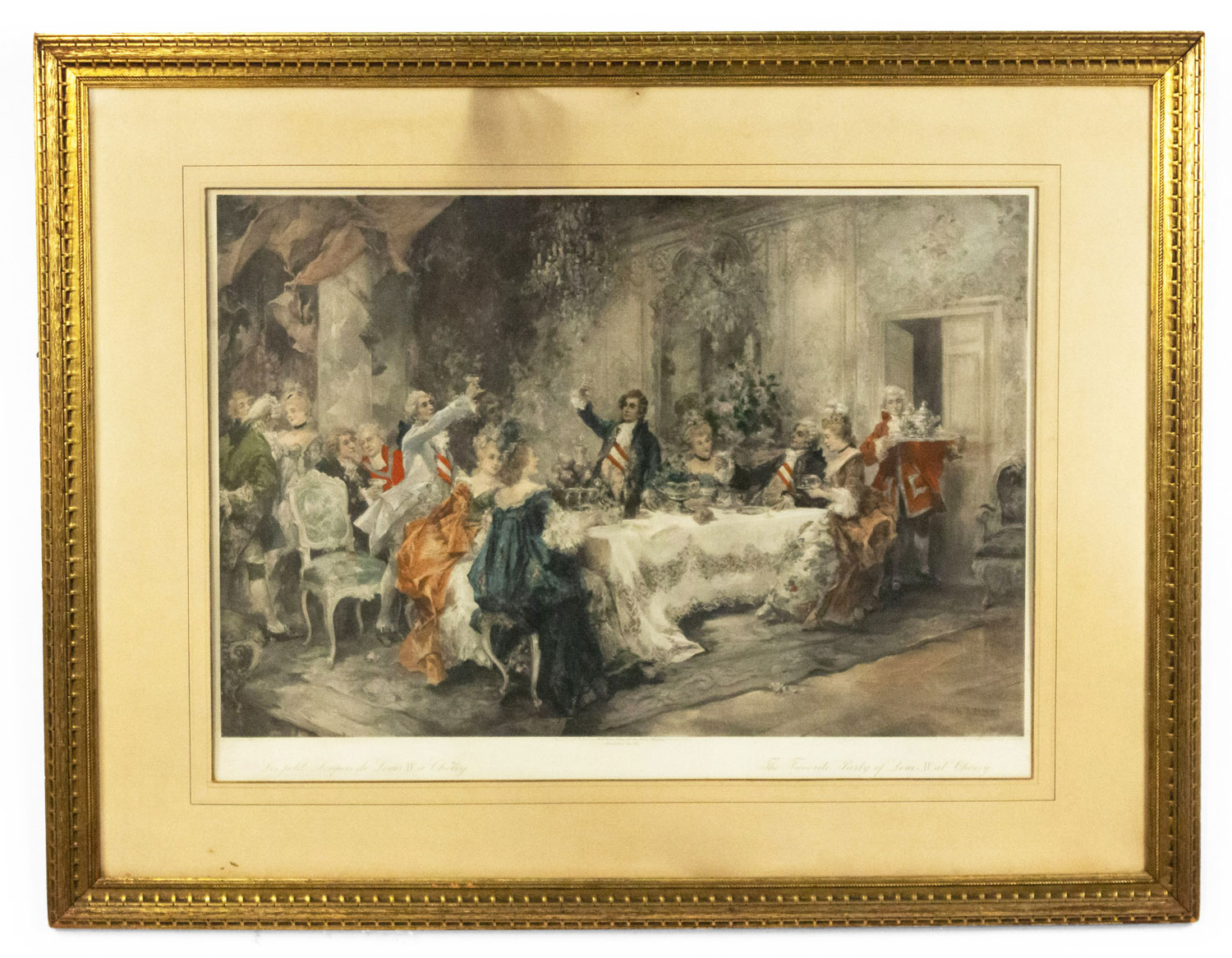 French Victorian (19th Cent) colored lithograph of 18th Century banquet scene.