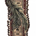 American Victorian needlepoint embroidered bell pull with leaf design and brass ball pull.