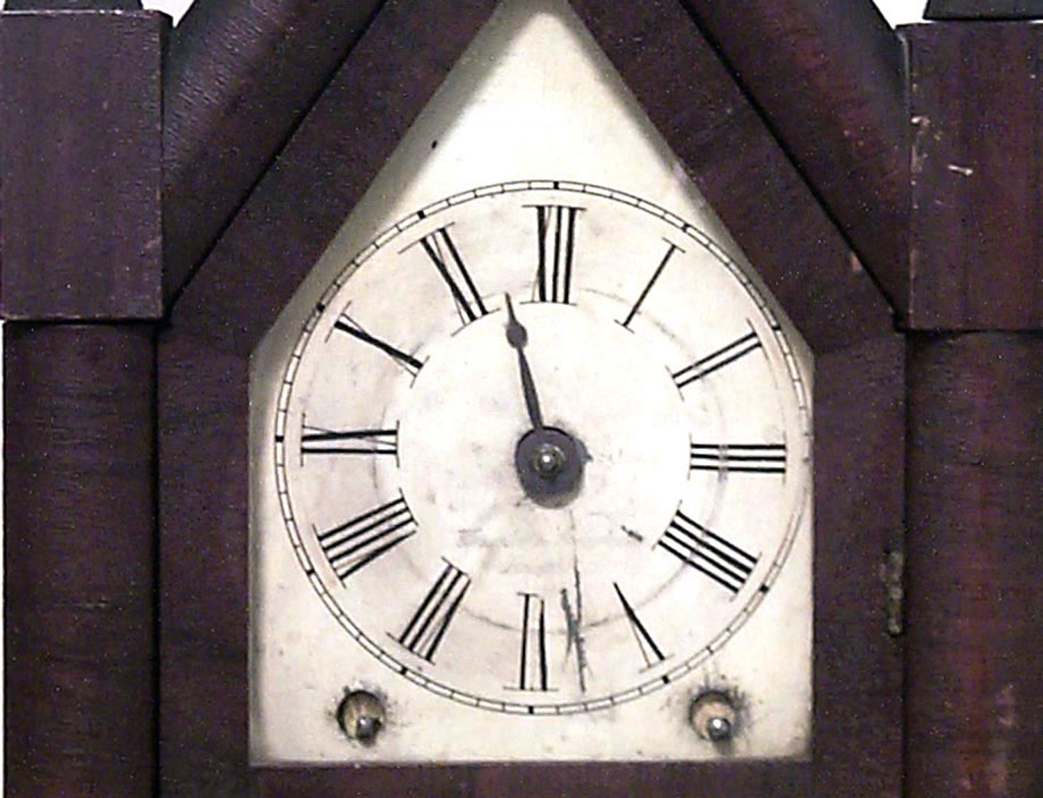 American Victorian mahogany mantel clock with steeple top. (not working)