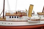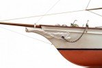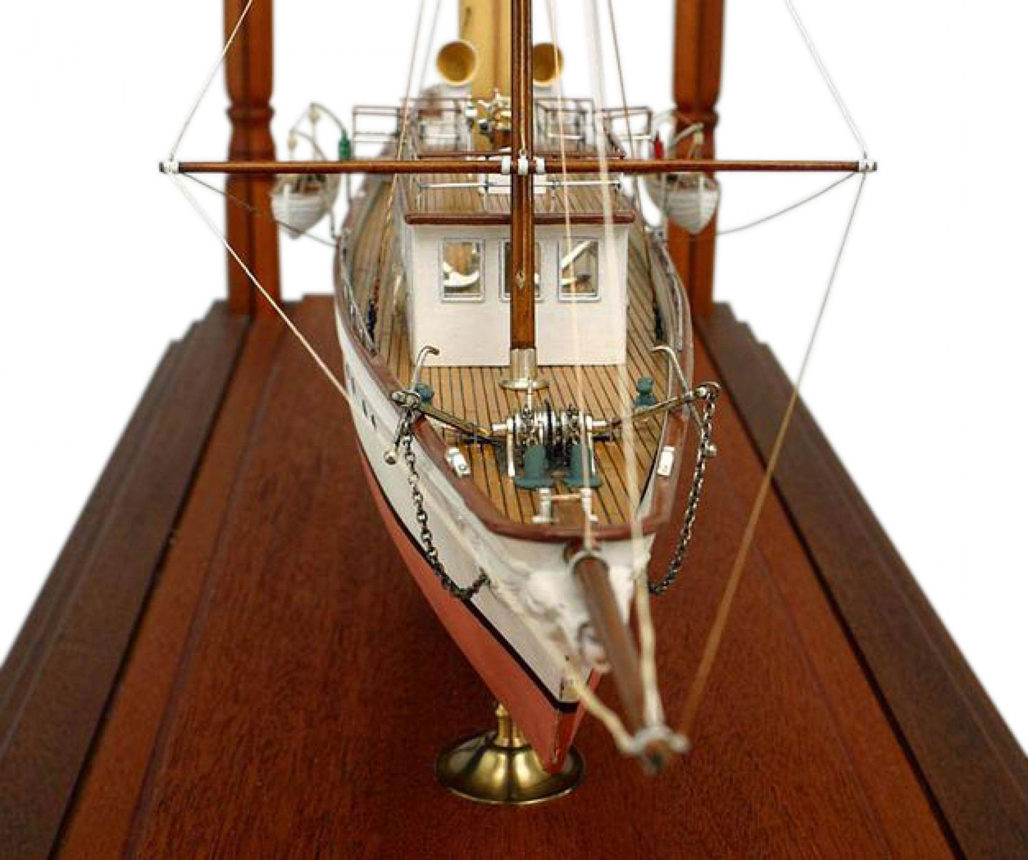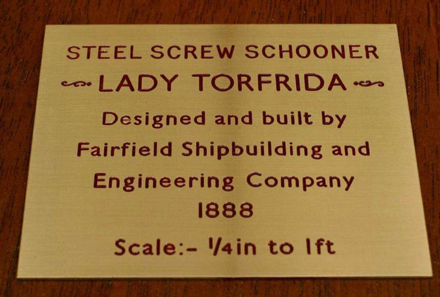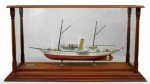 English Victorian ship model of pink and white decorated schooner ship in mahogany trimmed case (LADY OF TORFRIDA, 1888)