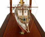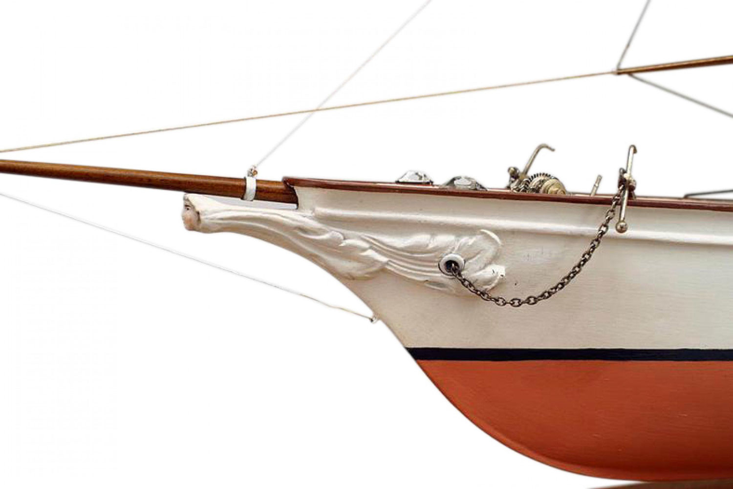 English Victorian ship model of pink and white decorated schooner ship in mahogany trimmed case (LADY OF TORFRIDA, 1888).