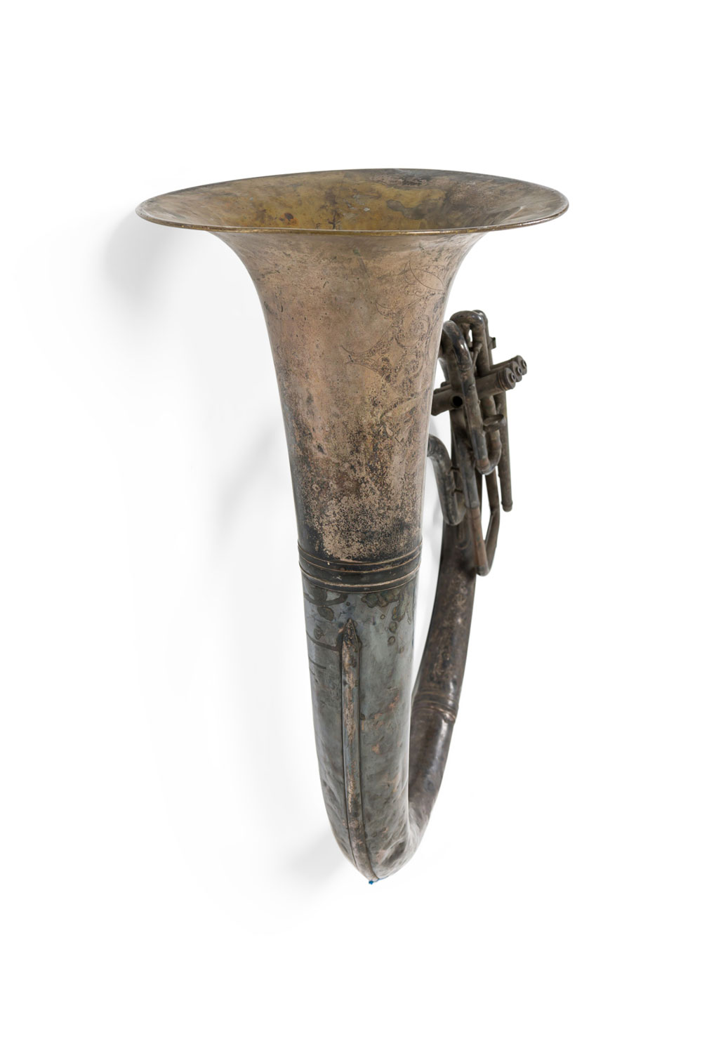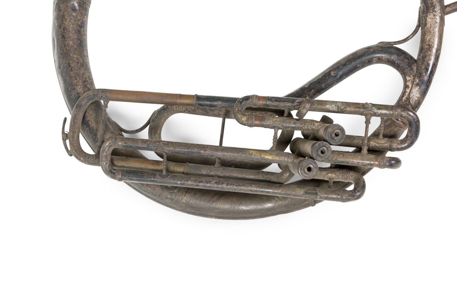 Silverplated (19th Century) sousaphone / helicon. Signed: CONN