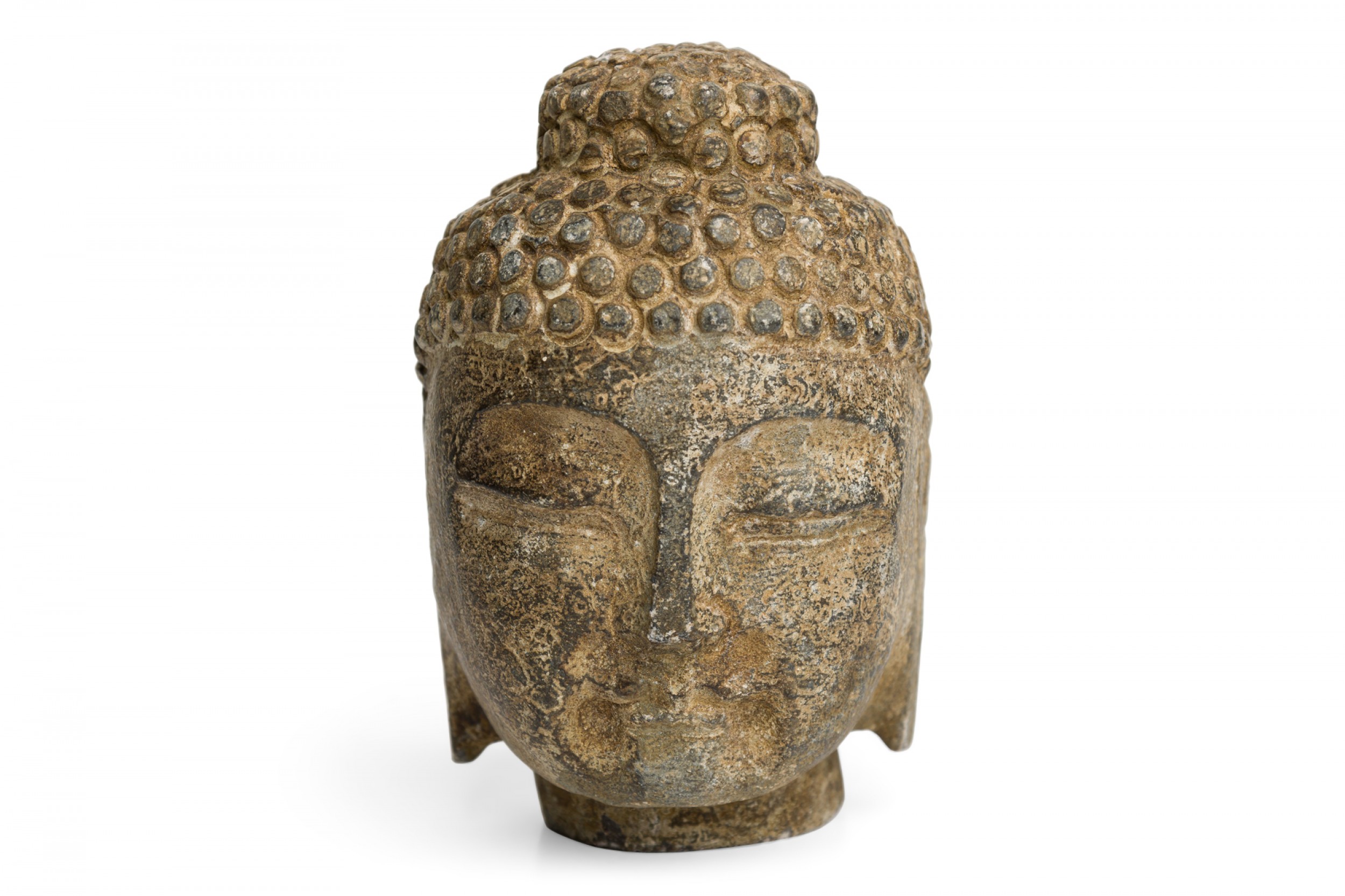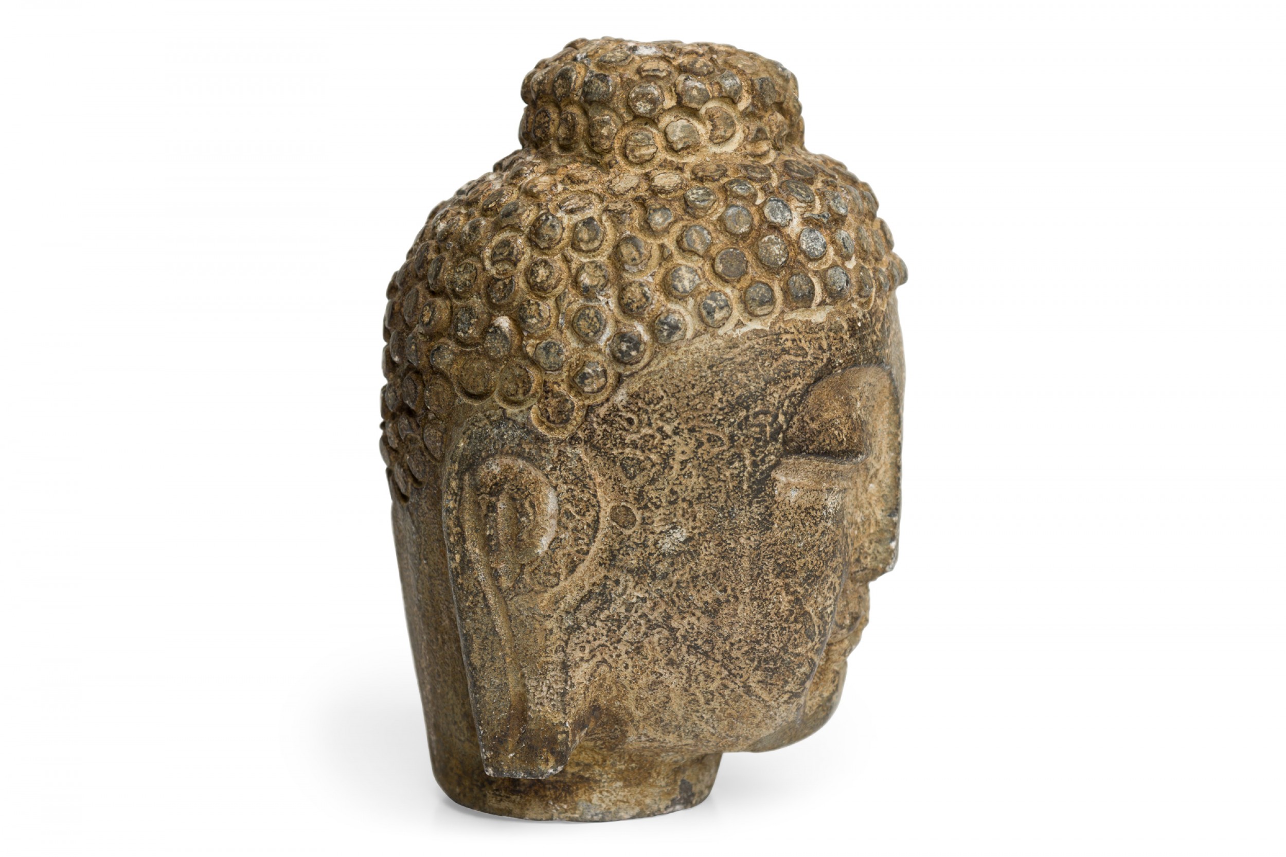 Vintage Buddha head statuette for tabletop display, made from carved stone..