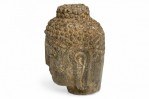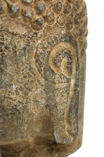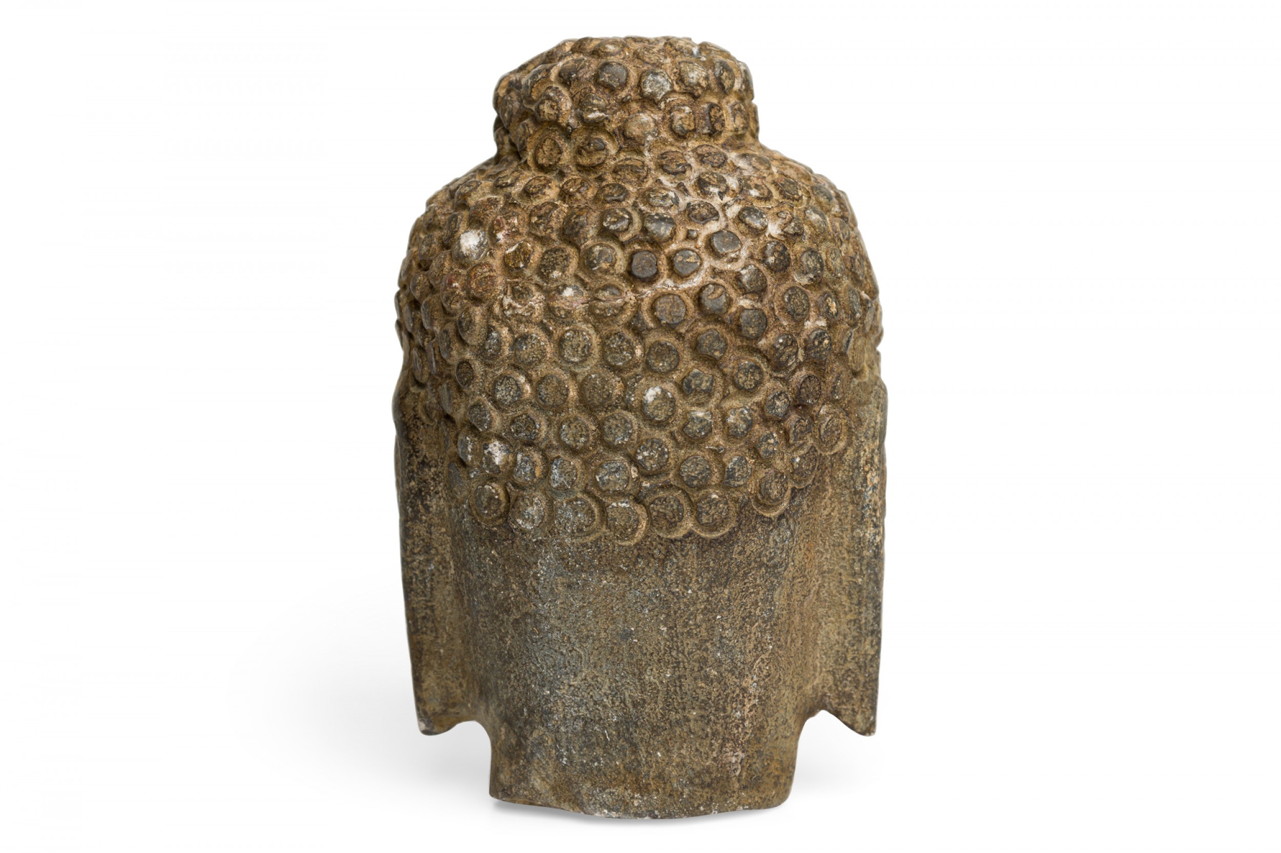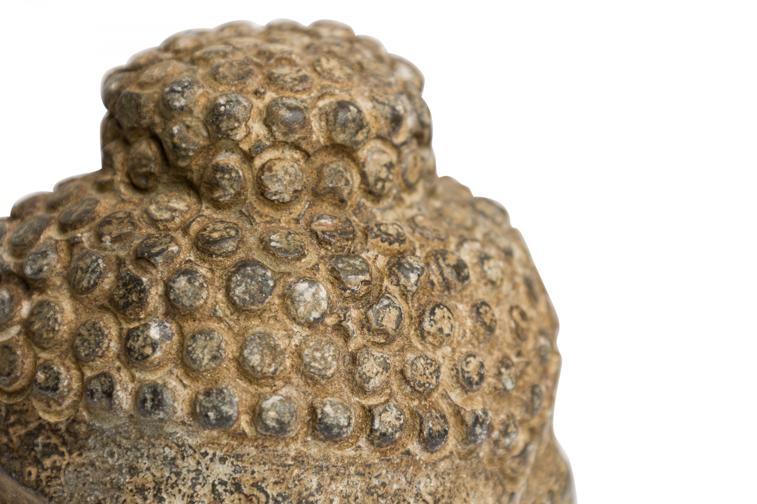 Vintage Buddha head statuette for tabletop display, made from carved stone.