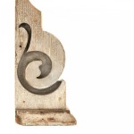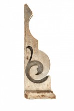 Vintage carved wood architectural wall-mount ornament with an irregular spiral shape and a flat wooden base.