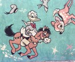 American Vintage Walt Disney wool rug with cartoon characters and blue background (7.5 x 4.5").