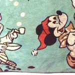 American Vintage Walt Disney wool rug with cartoon characters and blue background (7.5 x 4.5")