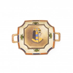 Middle Eastern Egyptian-style (1930s) porcelain square ashtray with small gilt handles and classic bust in center (NIPPON)