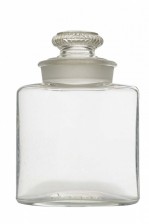 Vintage rectangular glass vanity jar with a cut glass round stopper