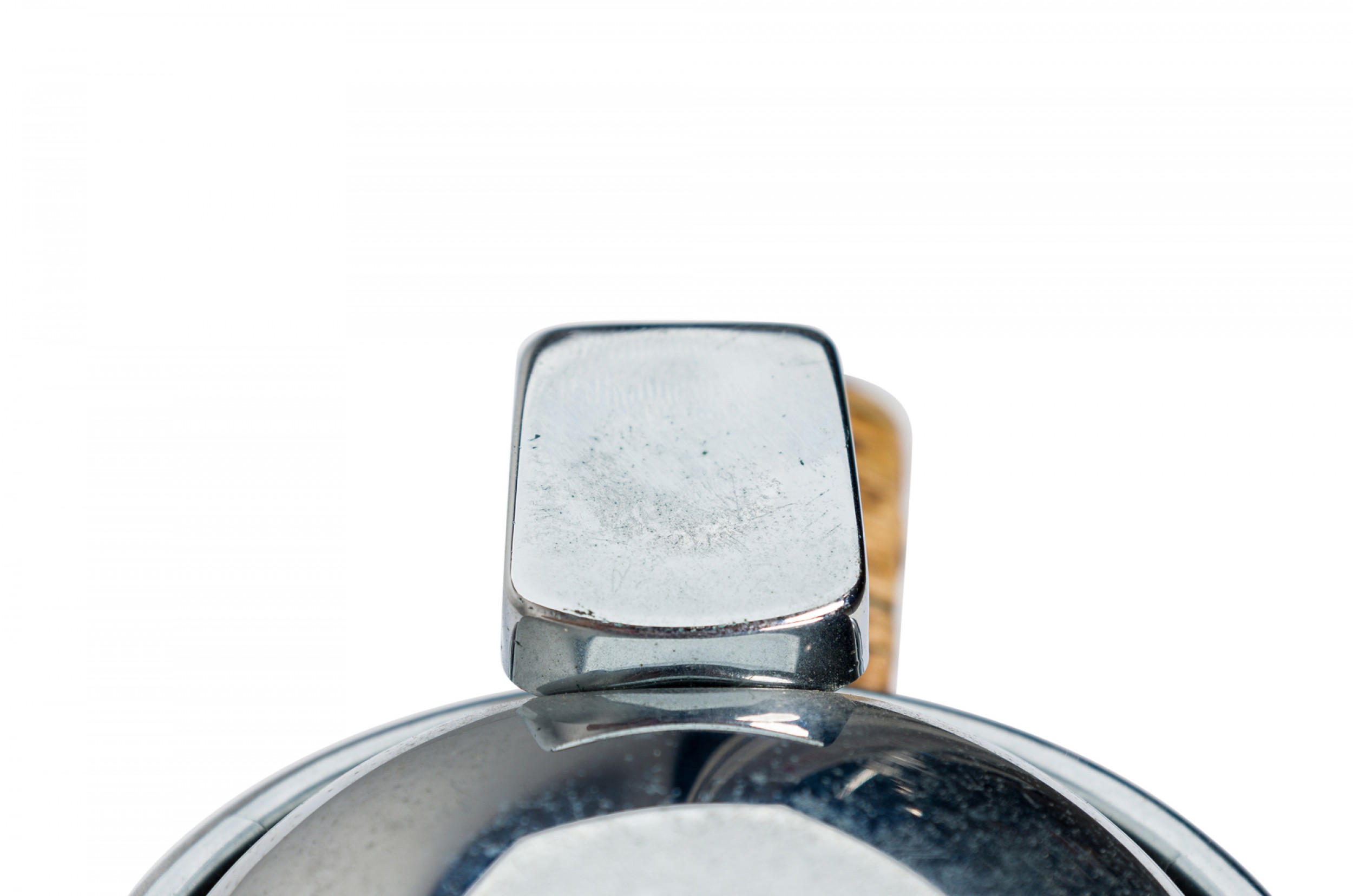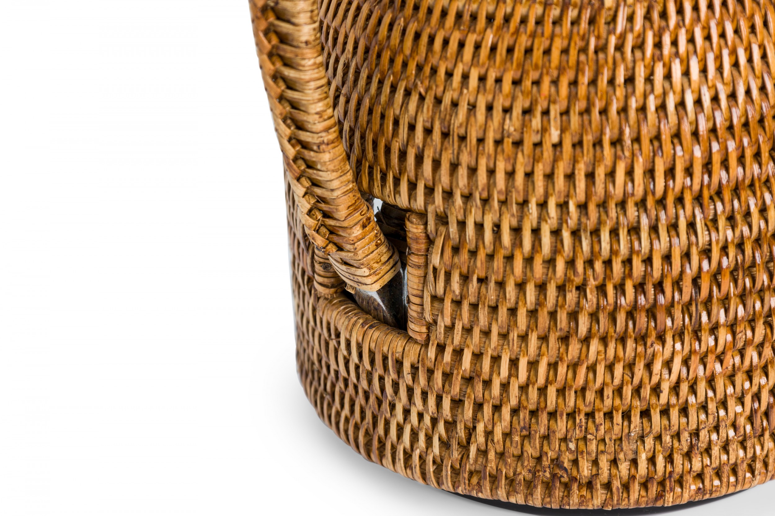 Style: Mid-Century Materials & Techniques: Metal, silver, wicker Category: Dining Room, Accessories/Décor/Bric-a-Brac Good; Wear consistent with age and use