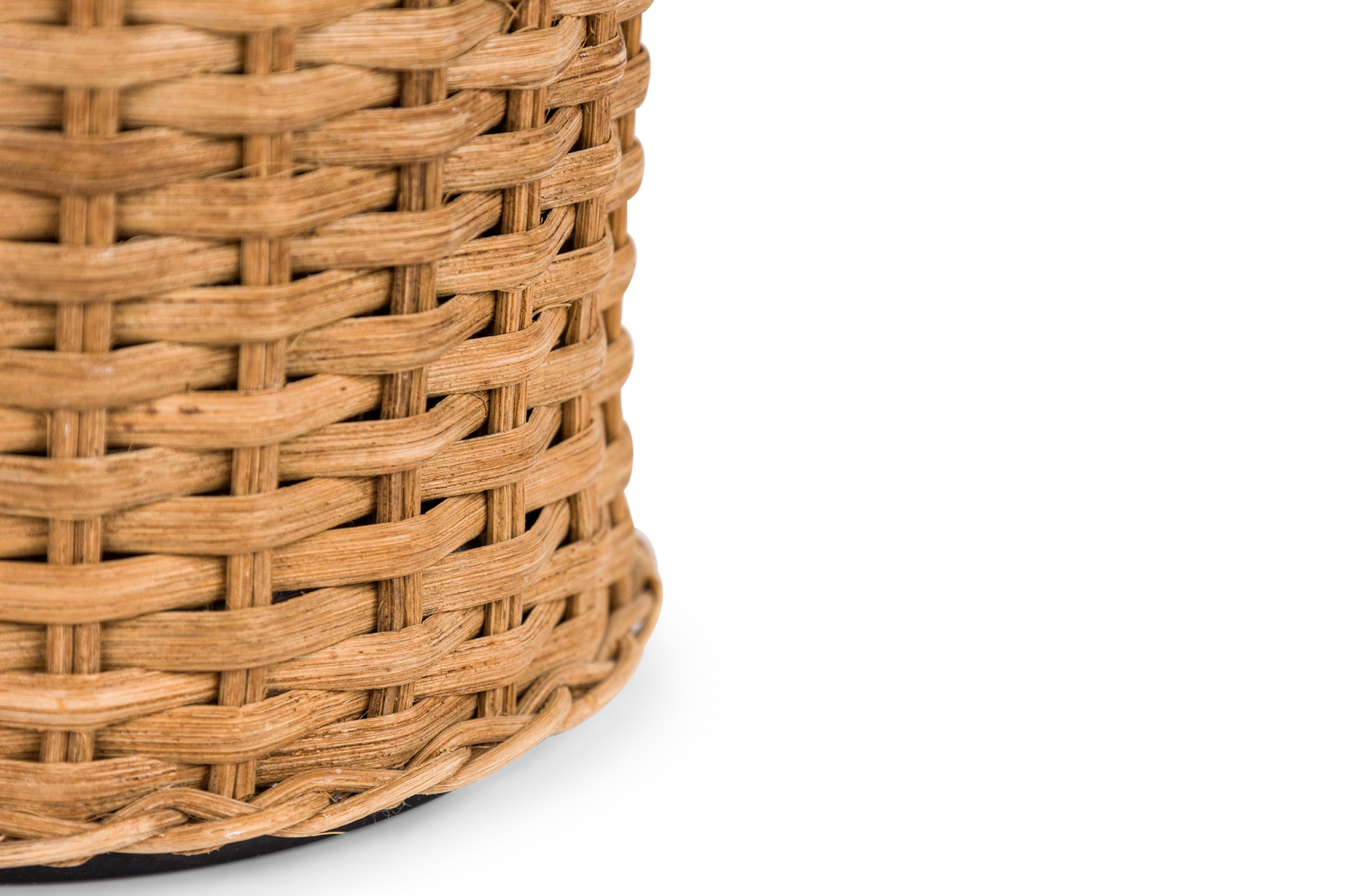 Style: Mid-Century Materials & Techniques: Metal, silver, wicker Category: Dining Room, Accessories/Décor/Bric-a-Brac Good; Wear consistent with age and use