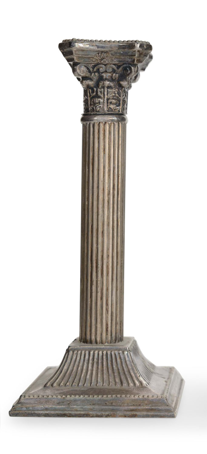 Vintage English Georgian style silverplate candlestick in the form of a fluted corinthian column
