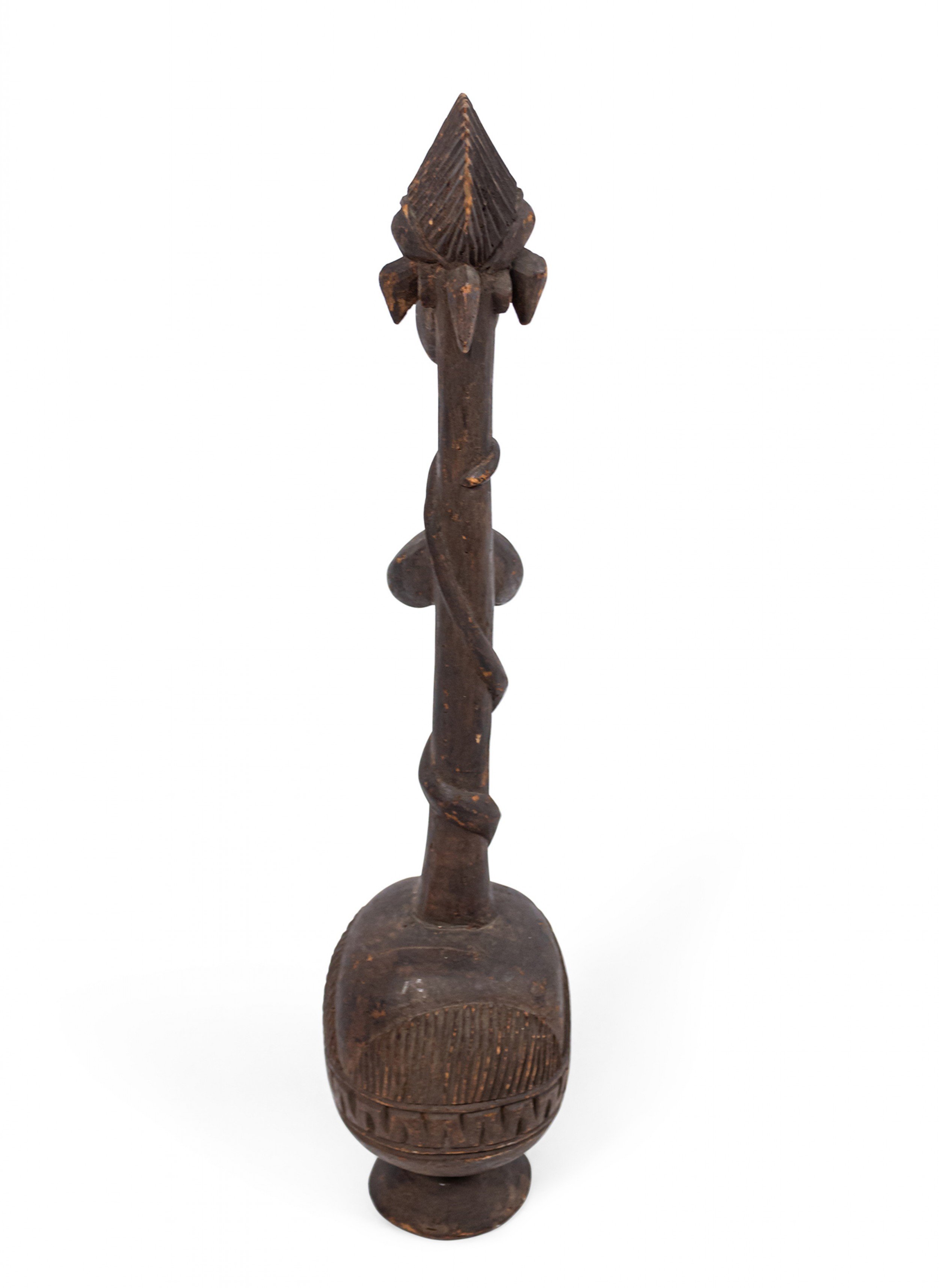 Vintage abstract tribal figure depicting a snake descending a torso.