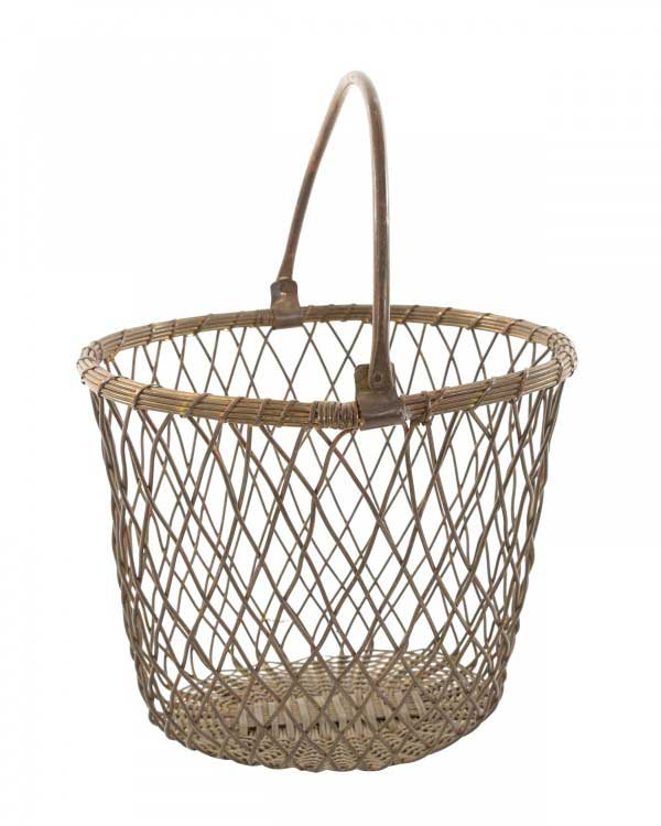 Vintage round, slightly tapered wirework basket with pivoting metal handle