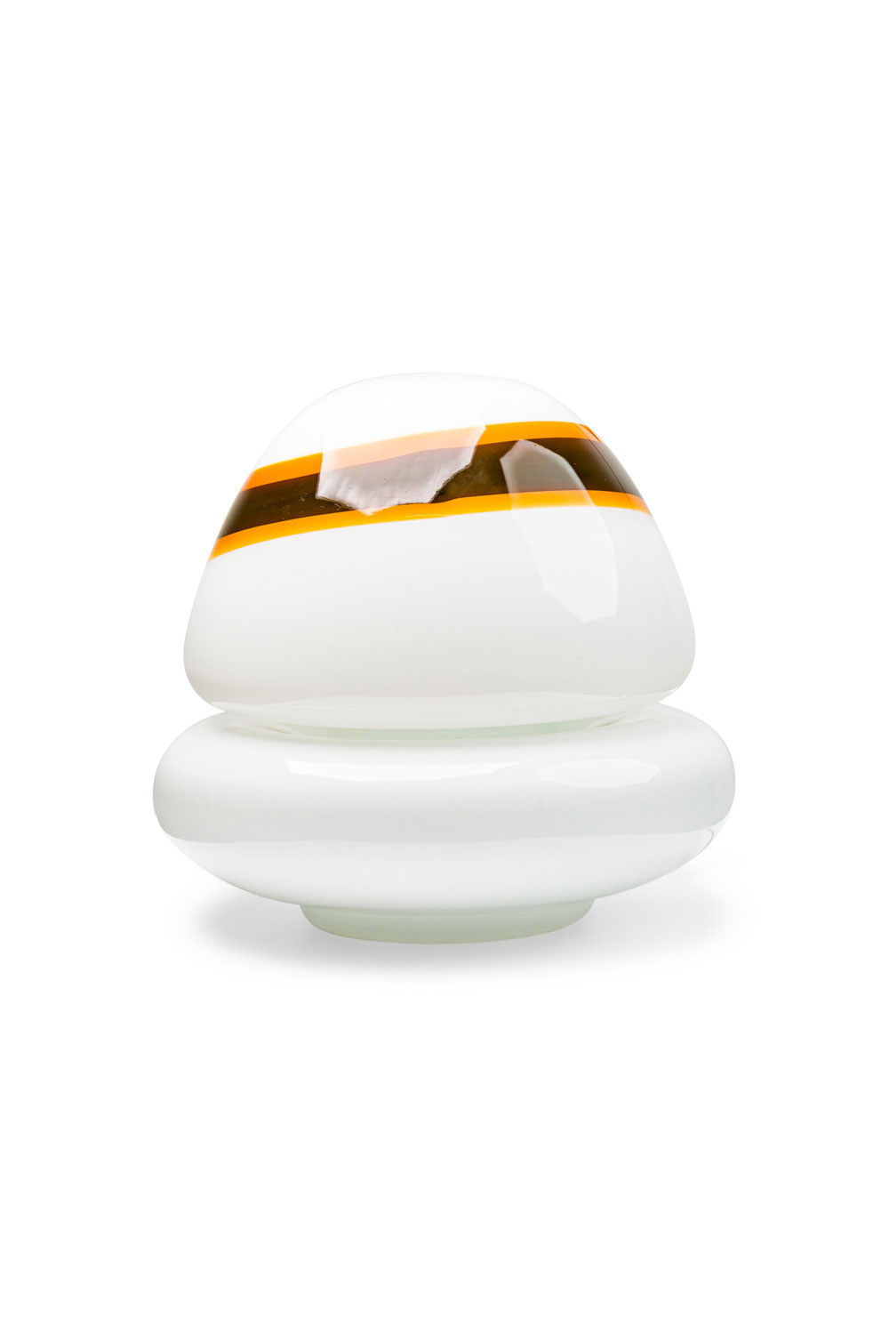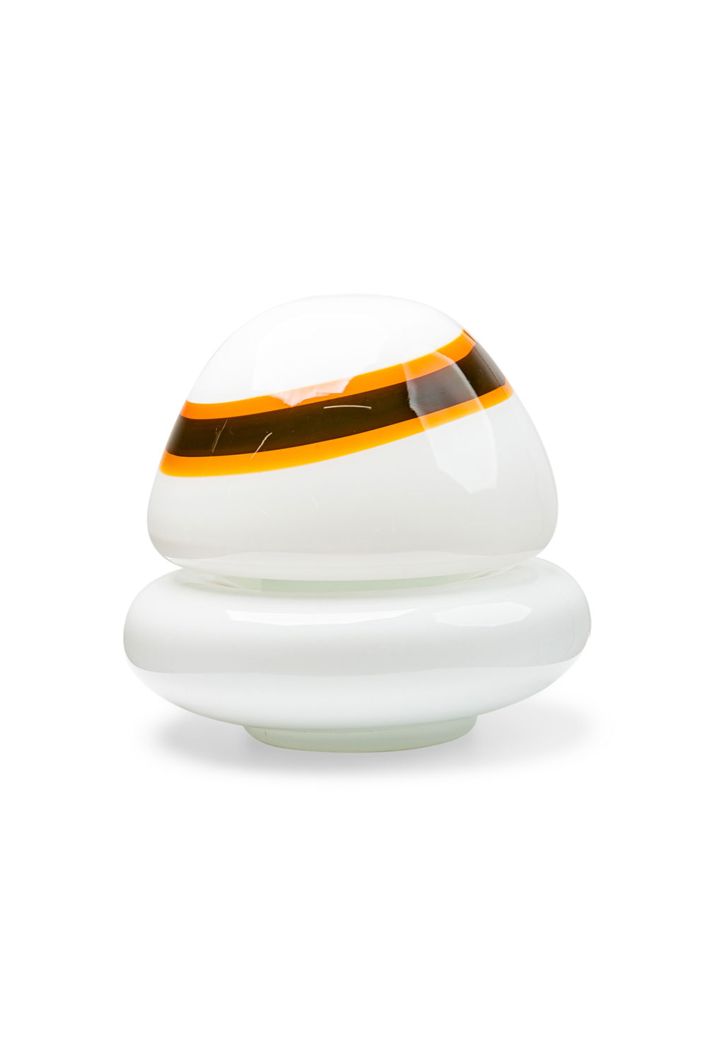 Italian Mid-Century Hand Blown Murano White Glass "Mushroom" Lamp decorated with a brown and doubl orange stripe (att; VISTOSI)