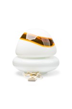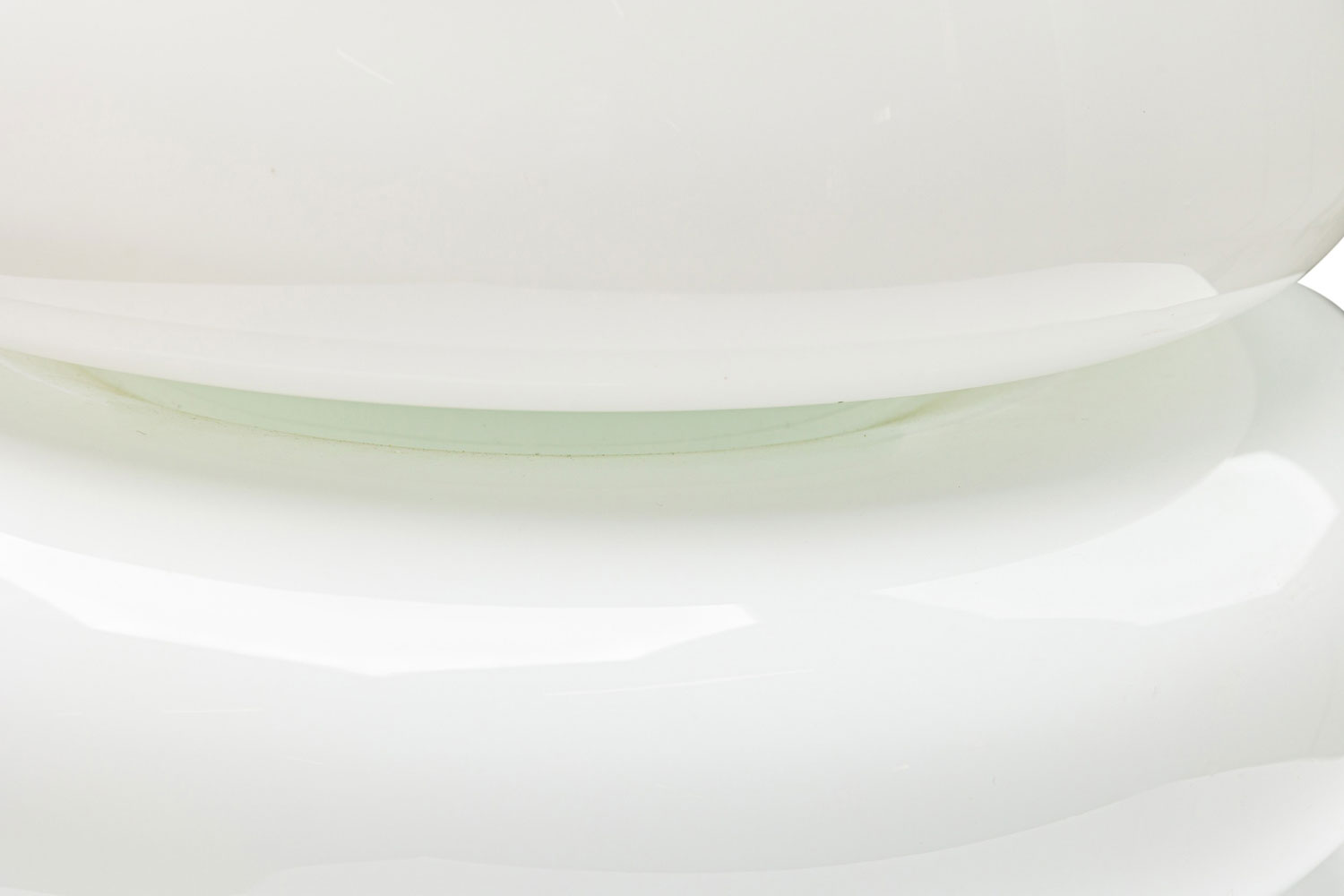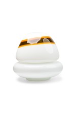 Italian Mid-Century Hand Blown Murano White Glass "Mushroom" Lamp decorated with a brown and doubl orange stripe (att; VISTOSI).