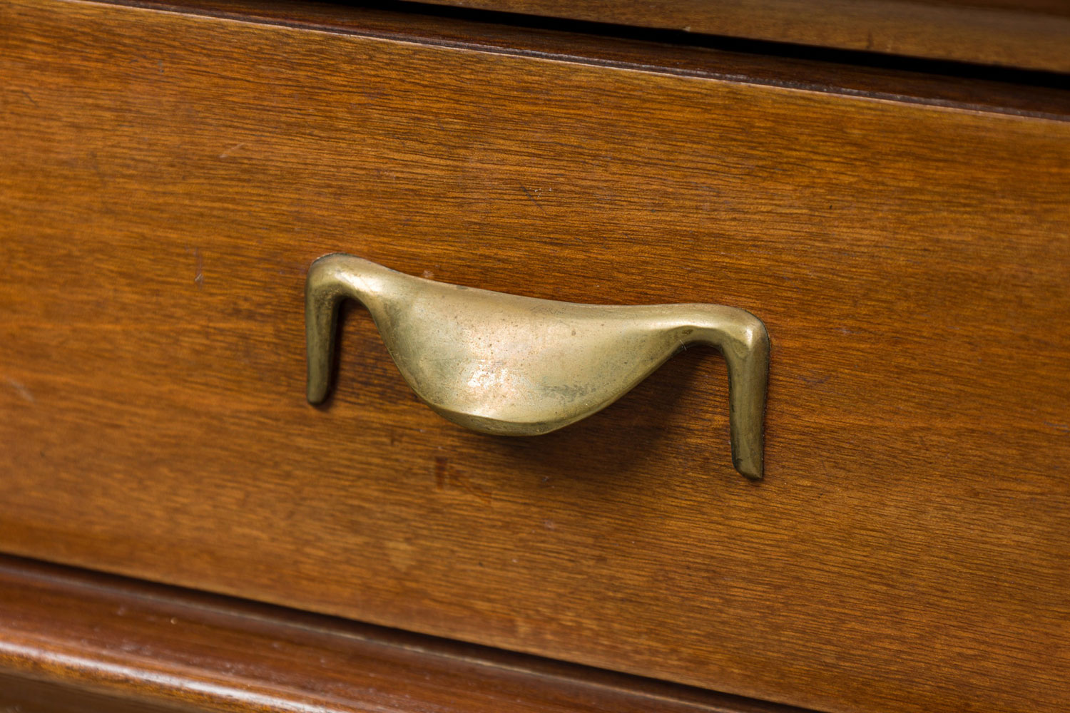 Style: Mid-Century Materials & Techniques: Brass, metal, walnut, wood Category: Dining Room Good; Wear consistent with age and use
