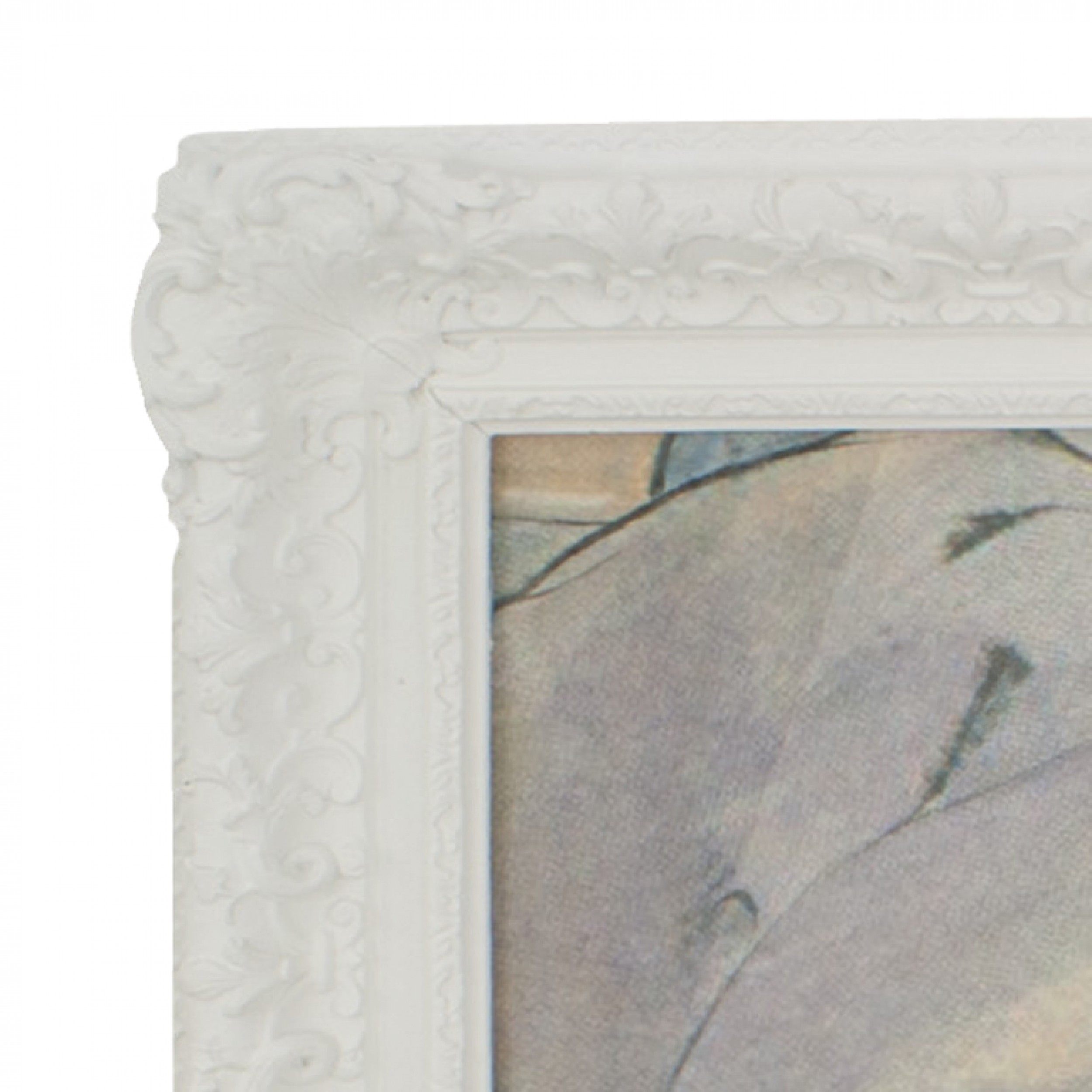 Contemporary reverse printed & painted on glass & mirror multi-colored stylized scene in a white lacquered carved frame (VOYEURISM & VANITY "SHOES", 2012, by GEOFFREY BRADFIELD).