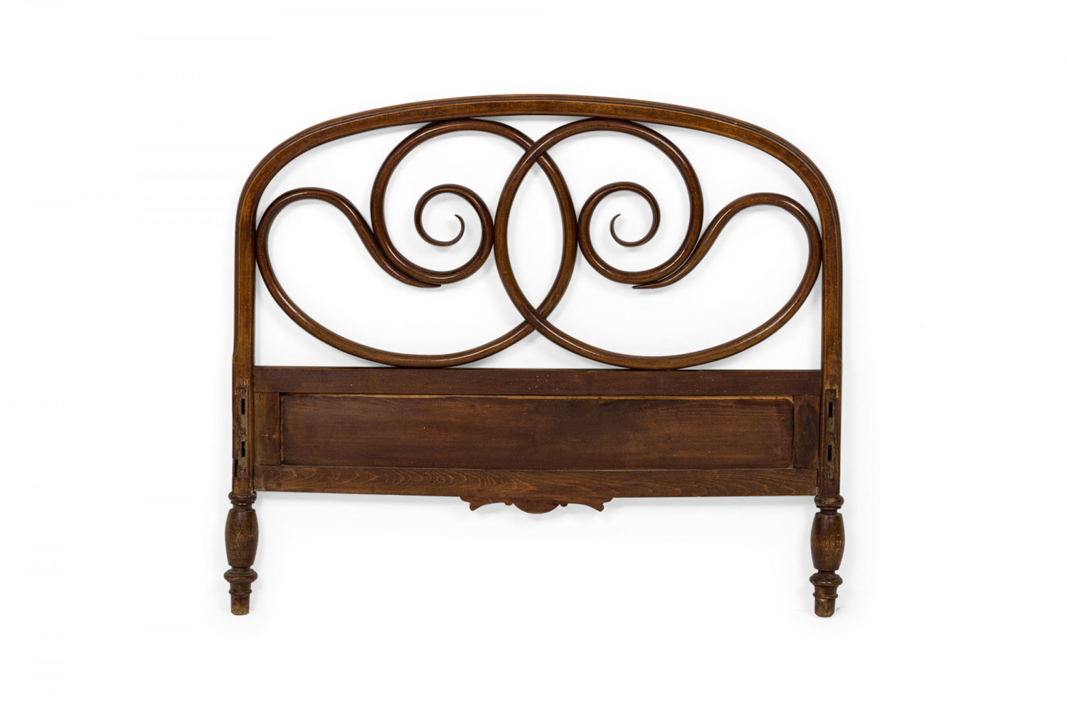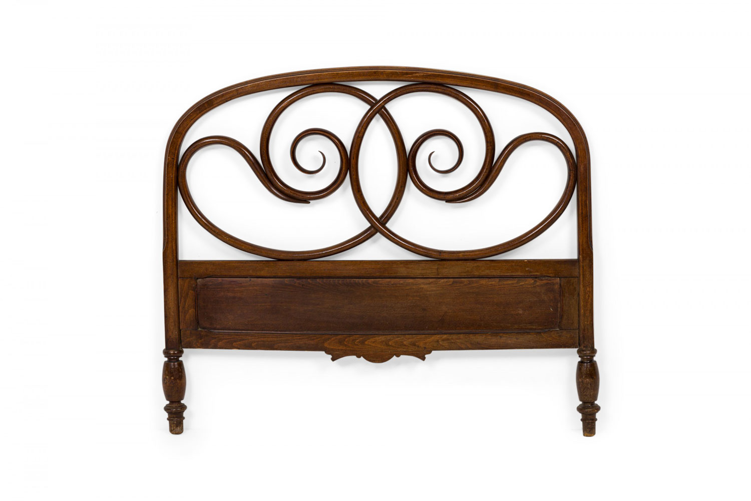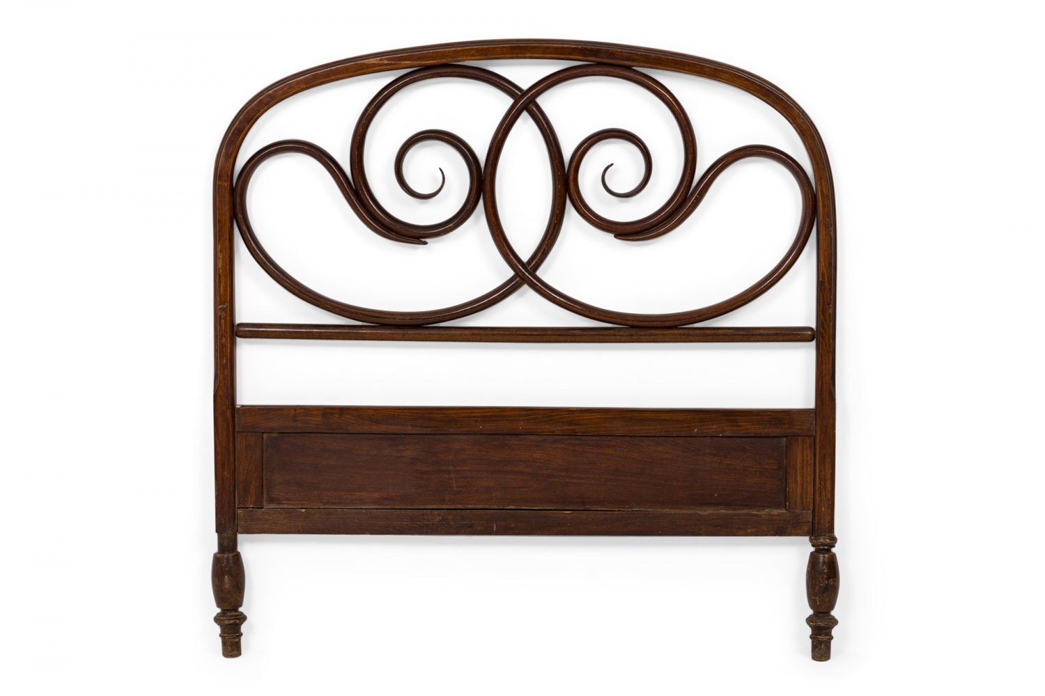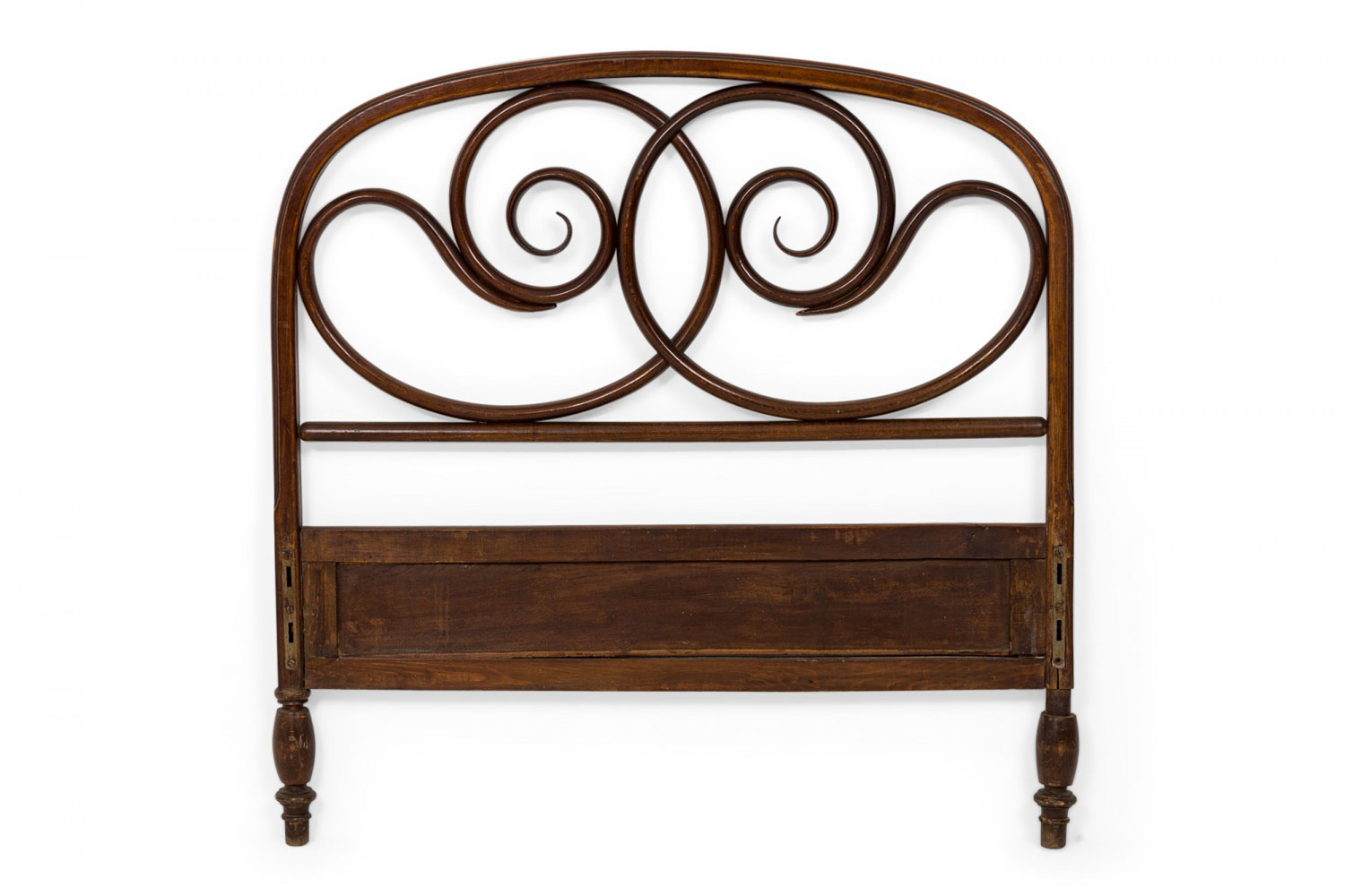 Bentwood (19/20th Century) stained walnut twin size bed with center double scroll design (includes: headboard, footboard, rails). (Irregular size, check measurements).