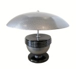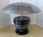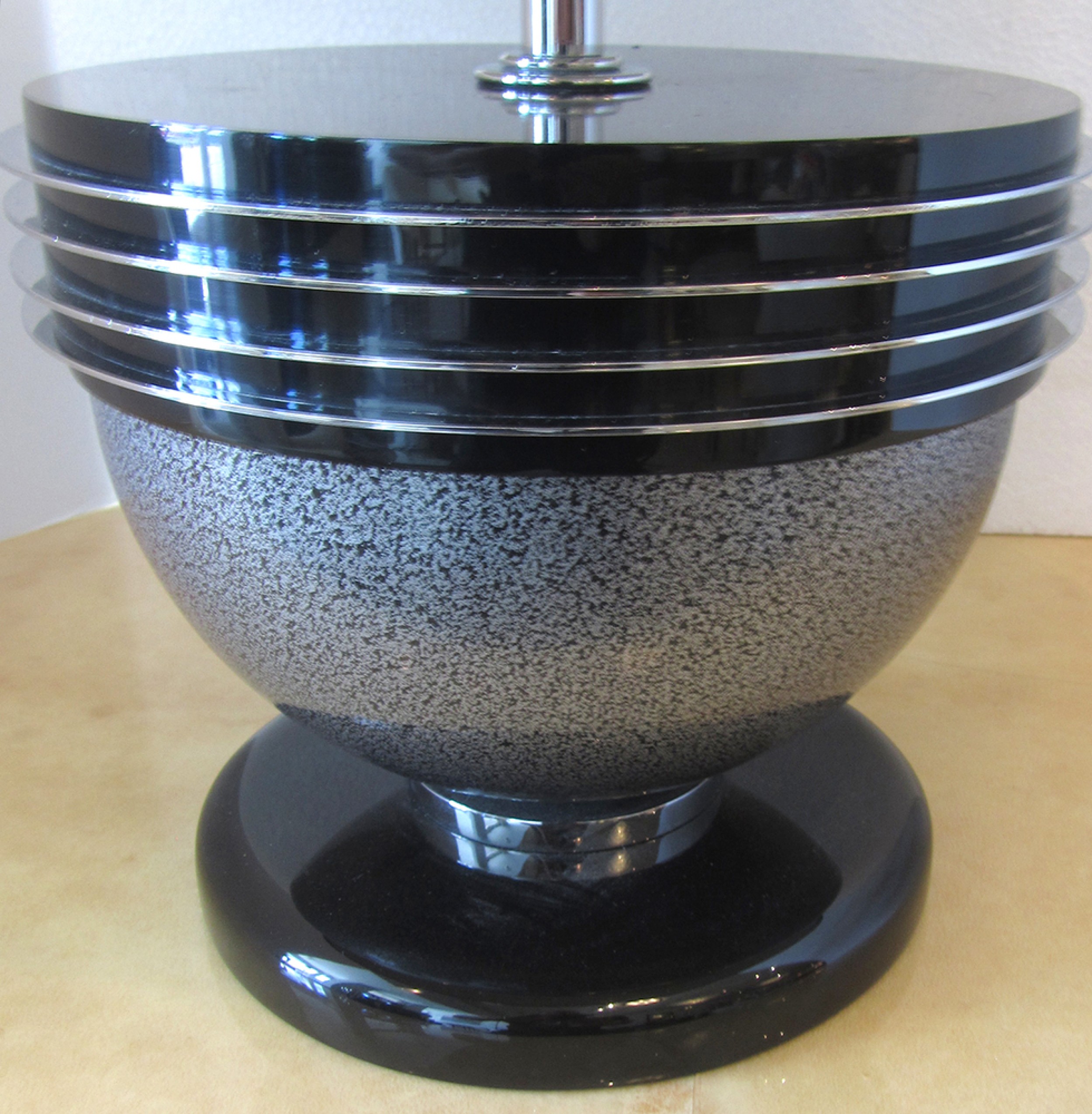 Mid-Century American Modern table lamp with a black and silver metallic finish and domed matching shade. (WALTER PROSPER).