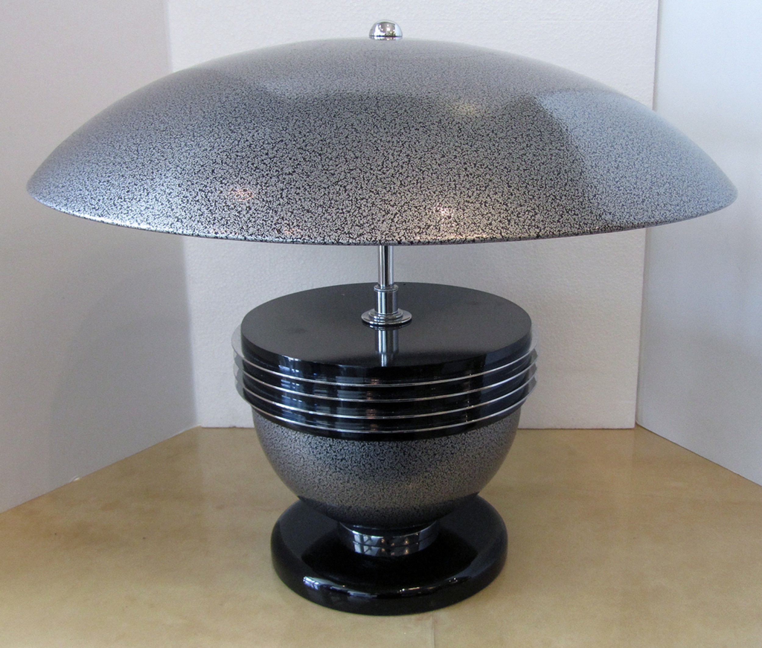 Mid-Century American Modern table lamp with a black and silver metallic finish and domed matching shade. (WALTER PROSPER)