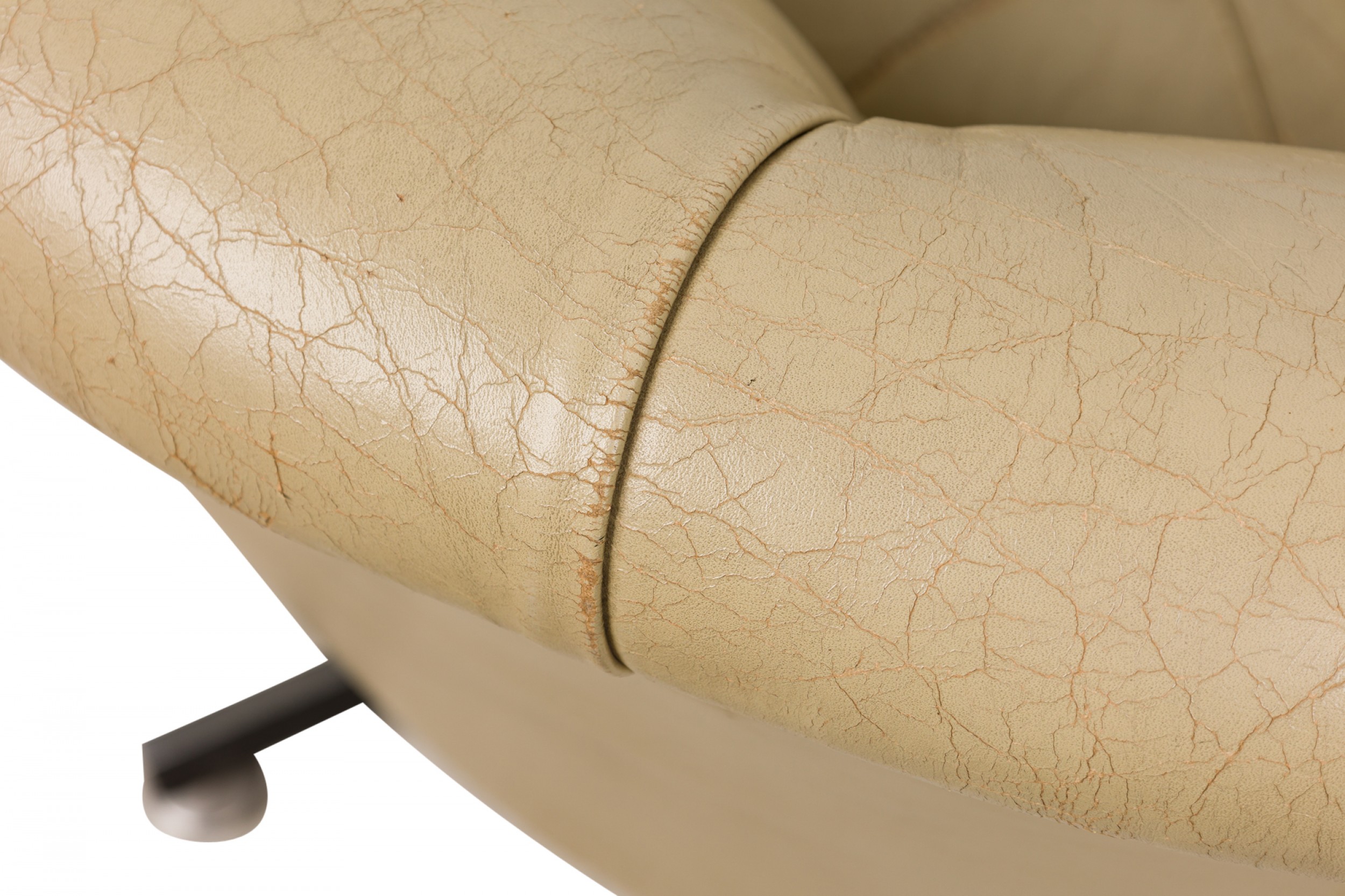 Style: Mid-Century Materials & Techniques: Chrome, leather, metal, tufted, upholstered Category: Seating, Office/Library Condition: Wear to upholstery, fabric on the underside of the chair is partially detached. Good; Wear consistent with age and use