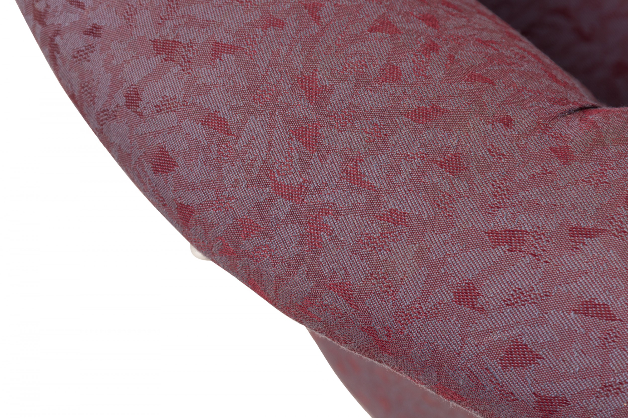 American Mid-Century tub-form swiveling lounge / armchair with lightly patterned purple button tufted fabric upholstery, resting on a four leg brushed chrome pedestal base. (WARD BENNETT).