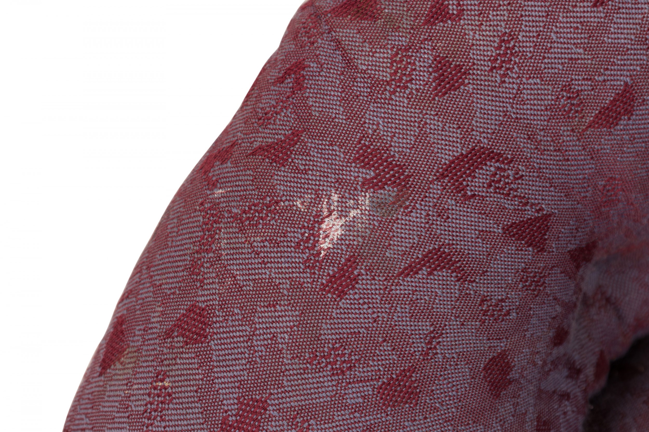 Style: Mid-Century Materials & Techniques: Chrome, fabric, metal, tufted, upholstered Category: Seating, Office/Library Condition: Small discoloration on right arm. Good; Wear consistent with age and use