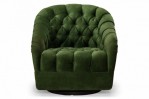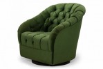 American Mid-Century tub form swiveling lounge / armchair with green button tufted upholstery. (WARD BENNETT)