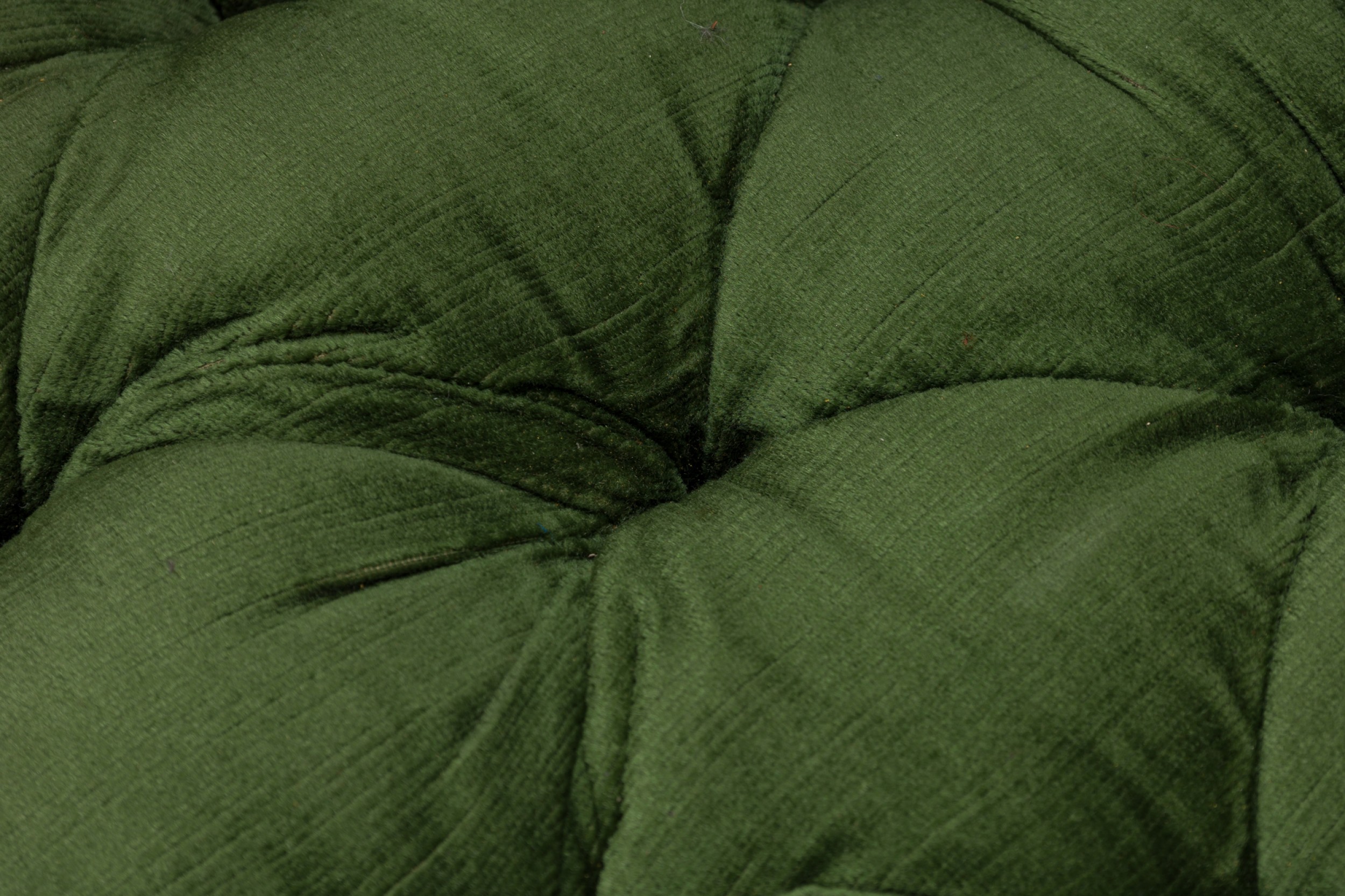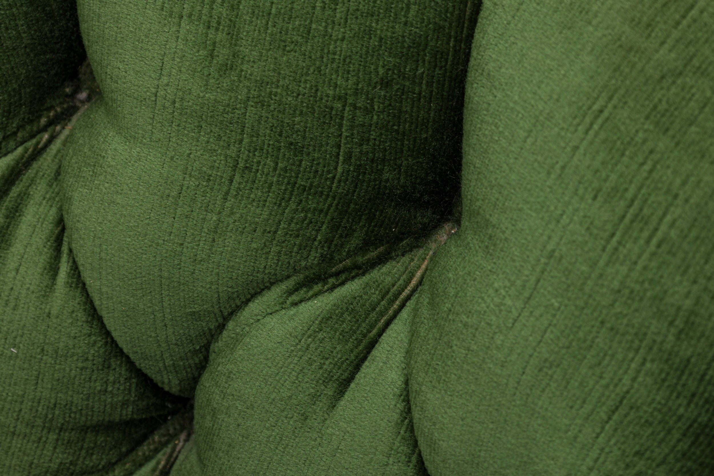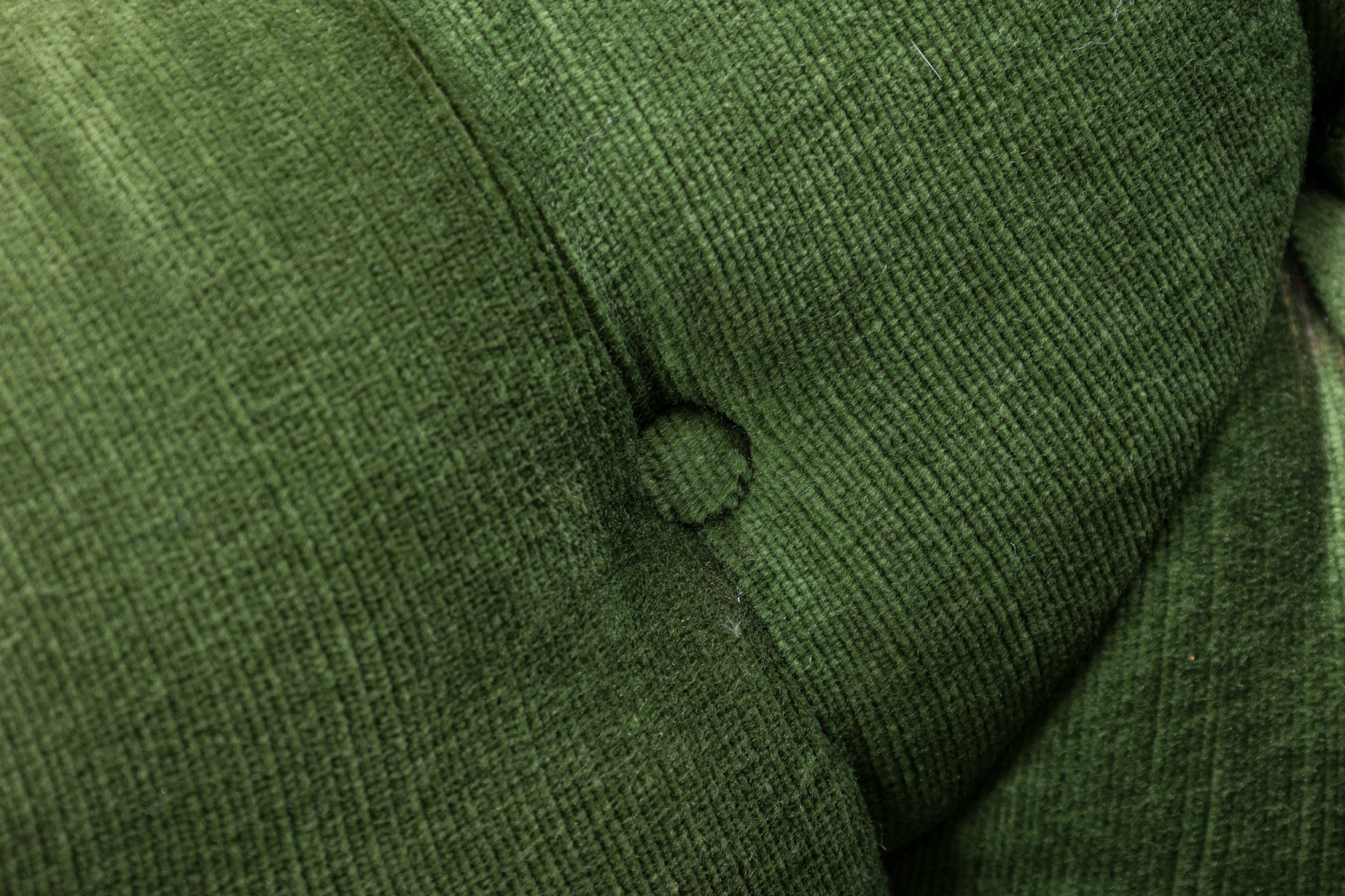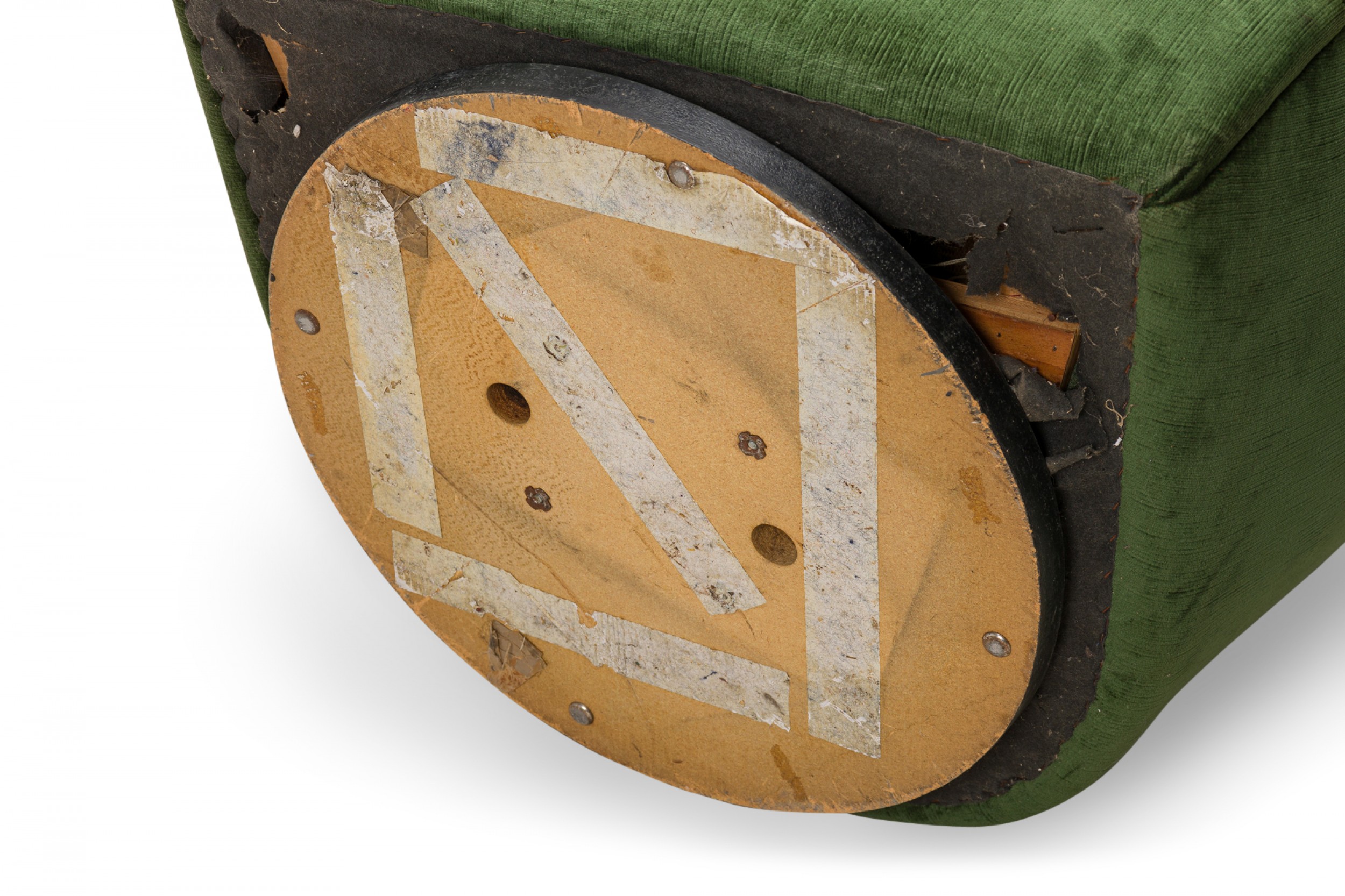 Style: Mid-Century Materials & Techniques: Fabric, tufted, upholstered, wood Category: Seating Good; Wear consistent with age and use