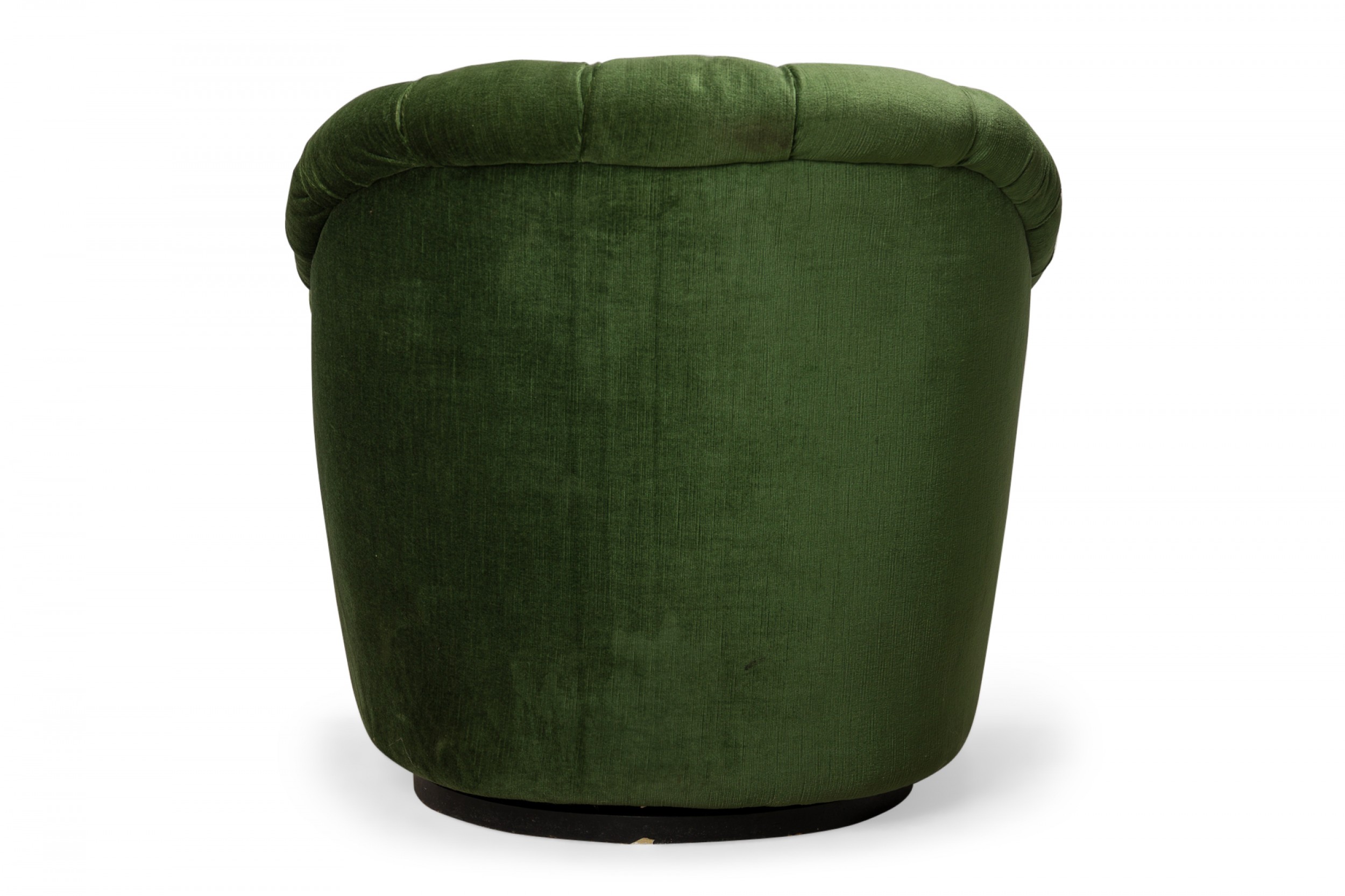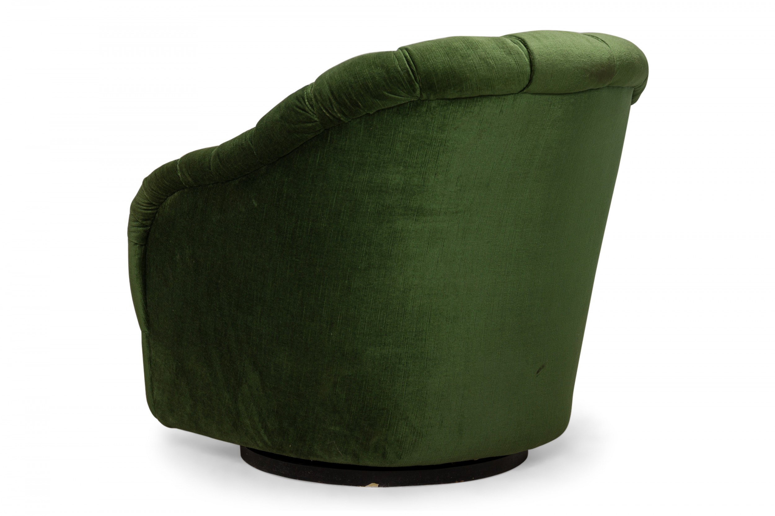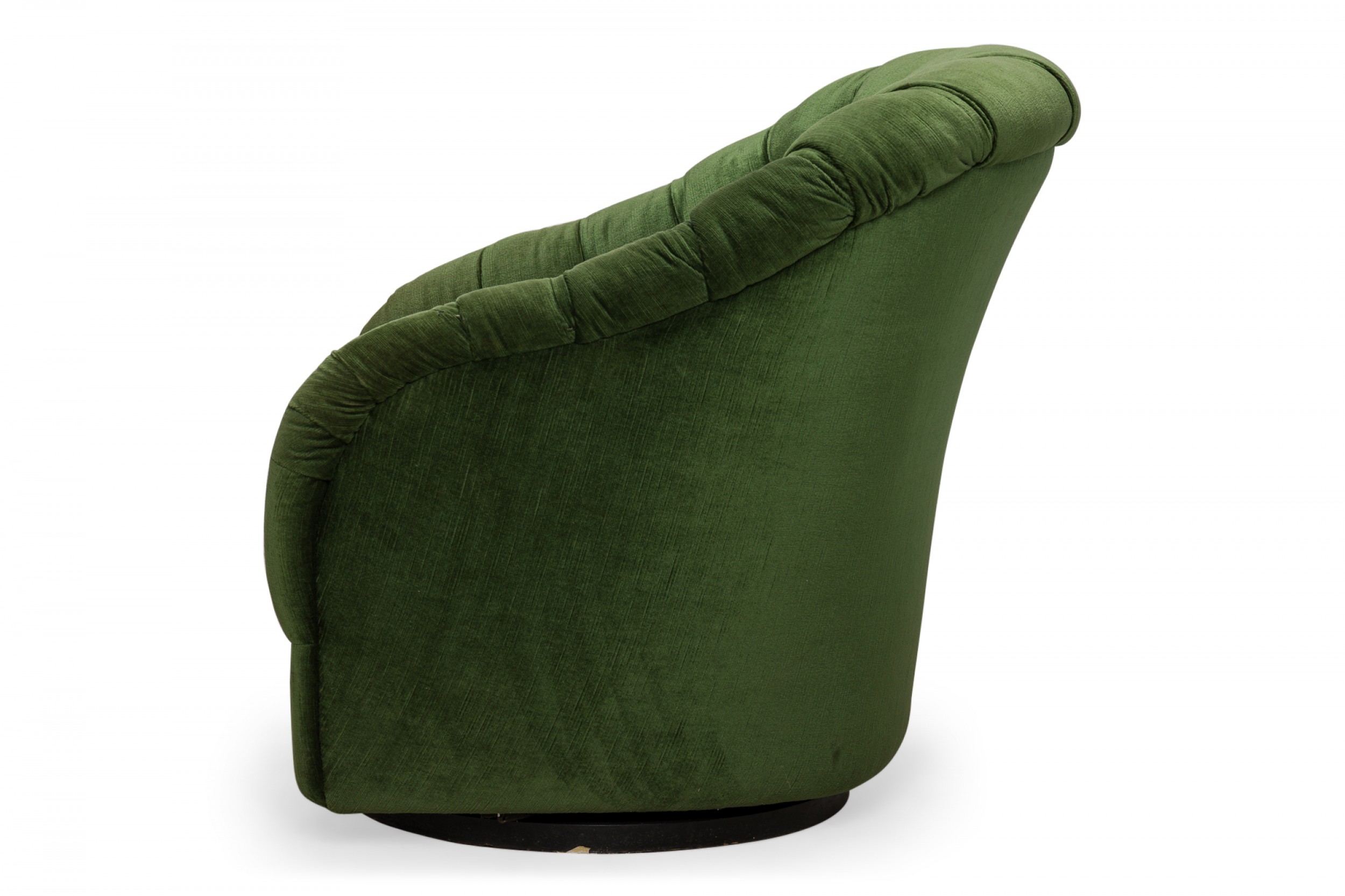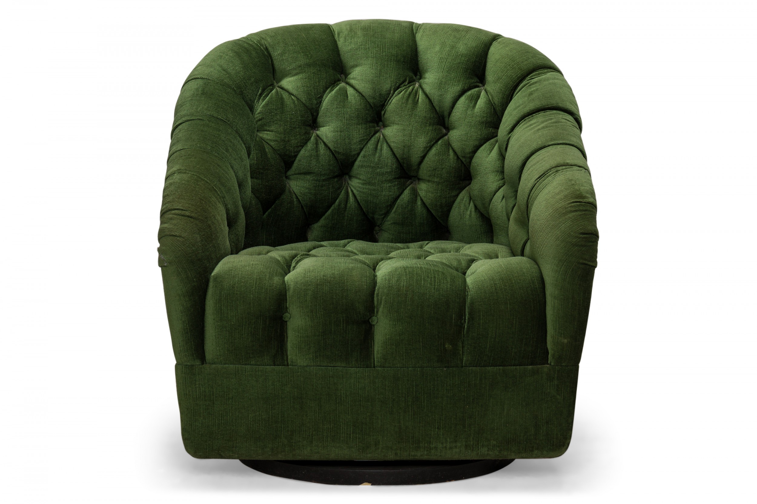 American Mid-Century tub form swiveling lounge / armchair with green button tufted upholstery. (WARD BENNETT).